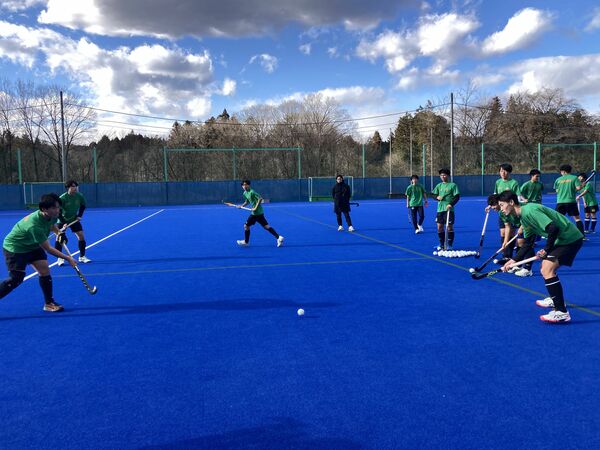 小学校の頃からホッケーに親しんでいた今市高校の体育の教師で、監督を務める木村 浩一郎さん(写真中央)