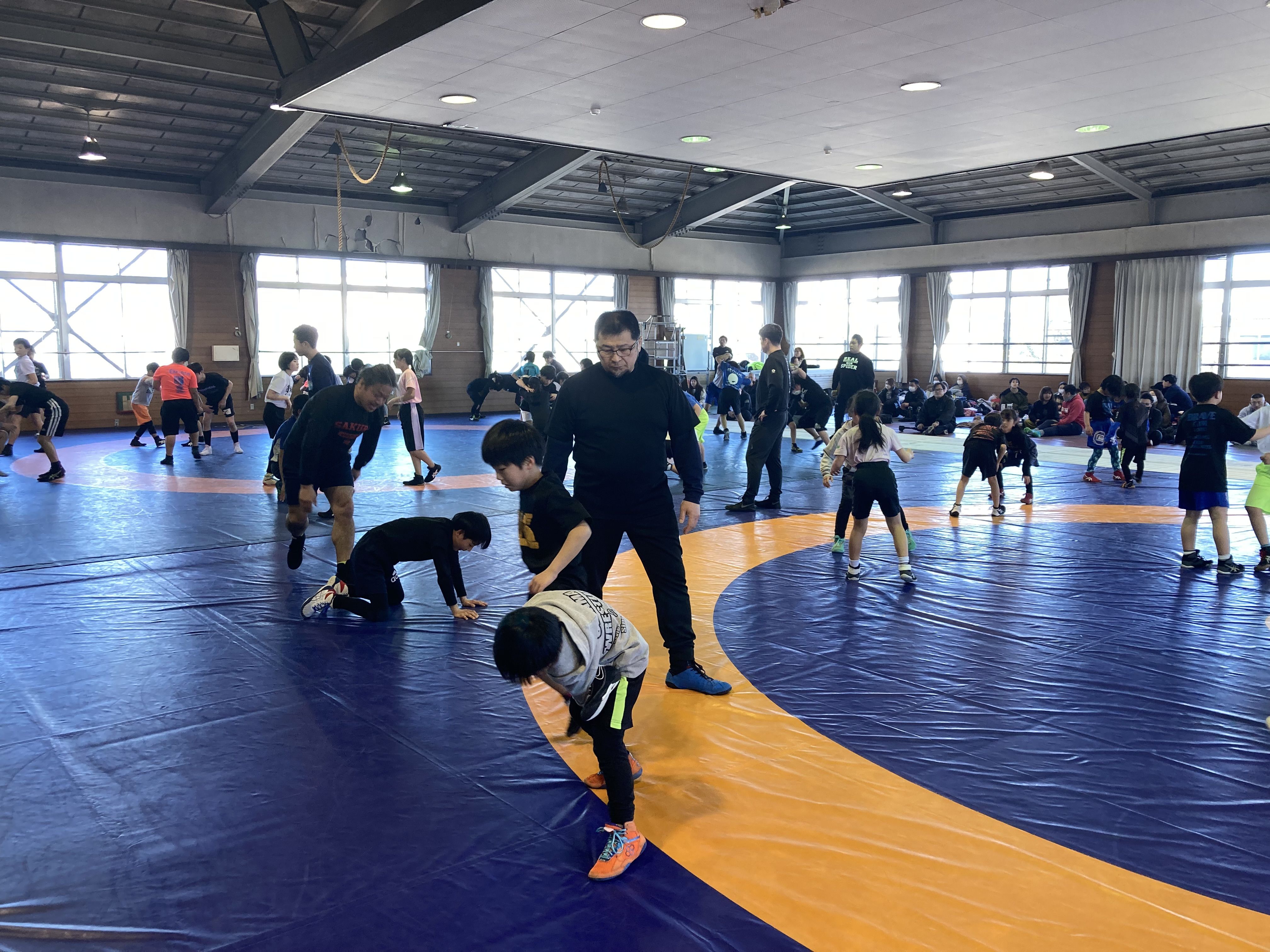 県内のレスリングチームの連絡役を担っている石﨑 智さん(中央)