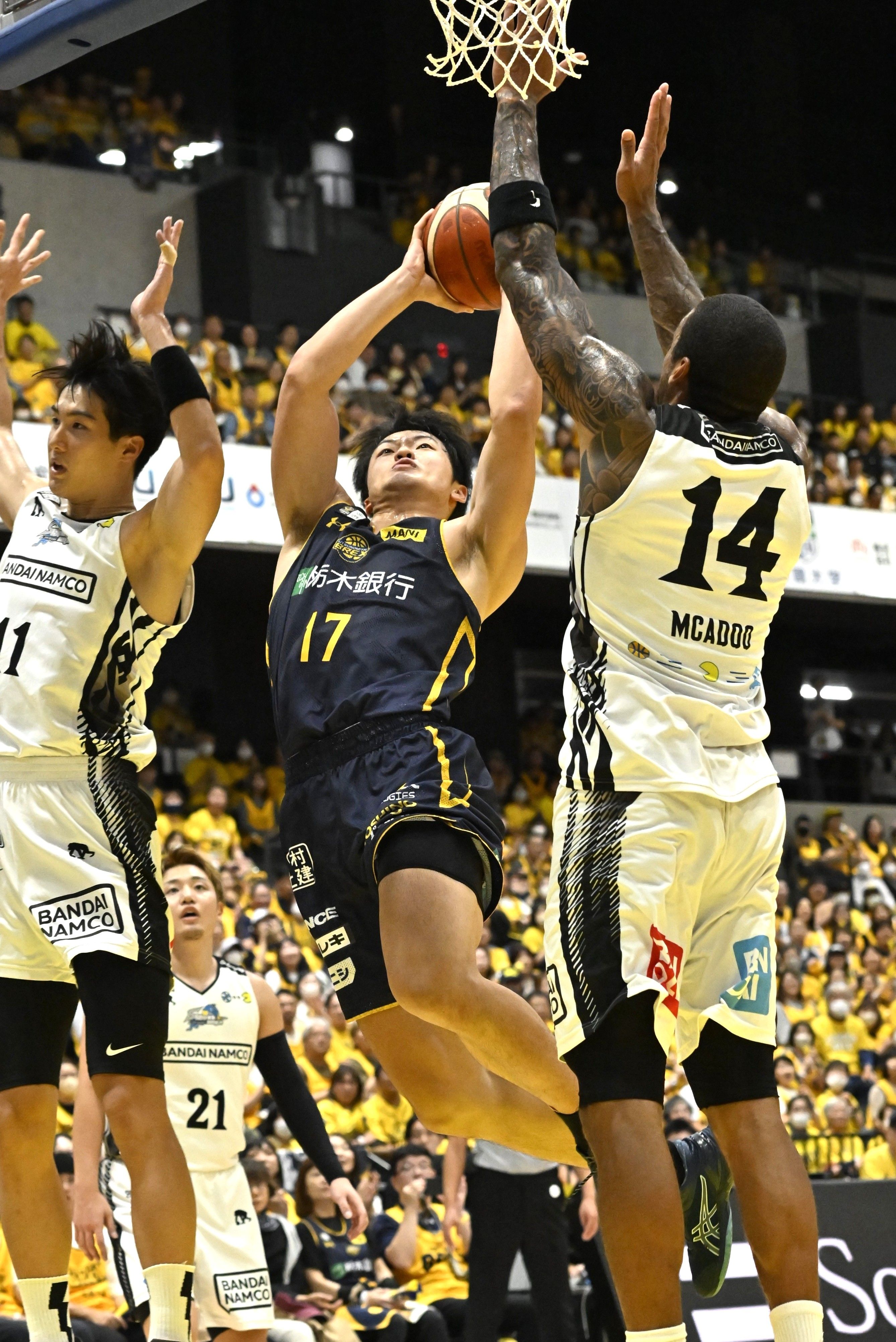 第3クオーター終了間際、ブレックスの星川がシュートを決める=日環アリーナ栃木、加藤竜矢撮影