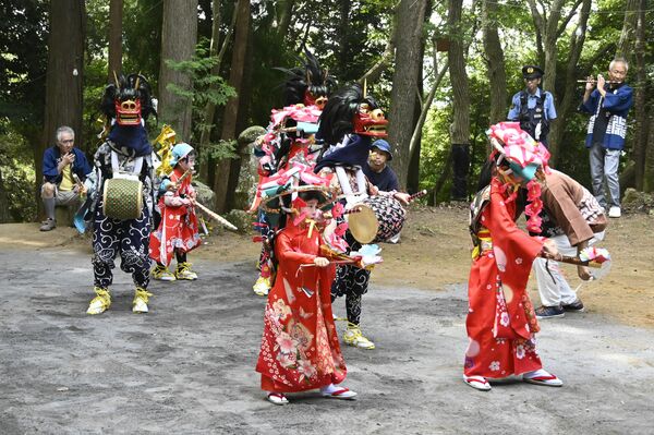 町で唯一現存、伝統の舞2年ぶり奉納 茂木「河井のささら」 役者不足を乗り越え、児童ら舞う