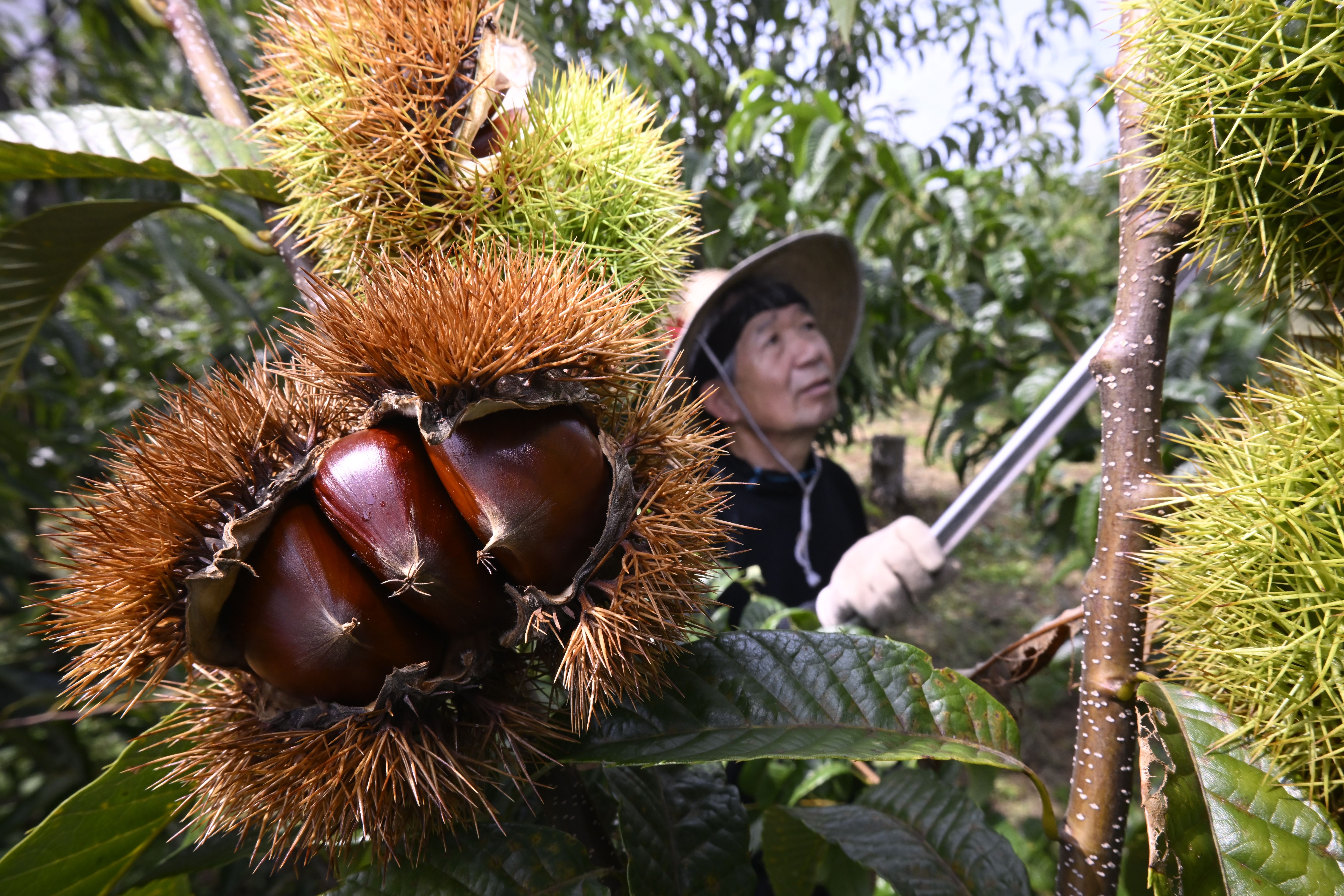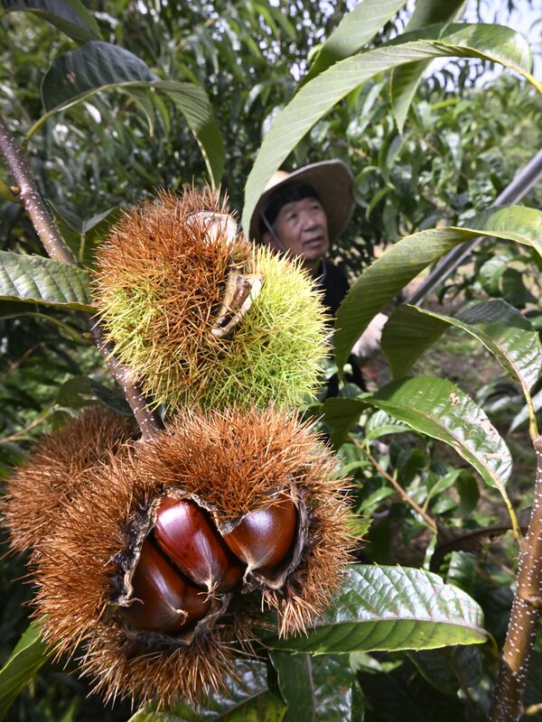 収穫が始まったクリ=18日午前10時40分、益子町塙