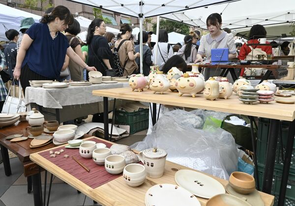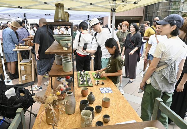益子焼を買い求める人たちで賑わった陶器市の出張イベント=20日午前、東京都渋谷区