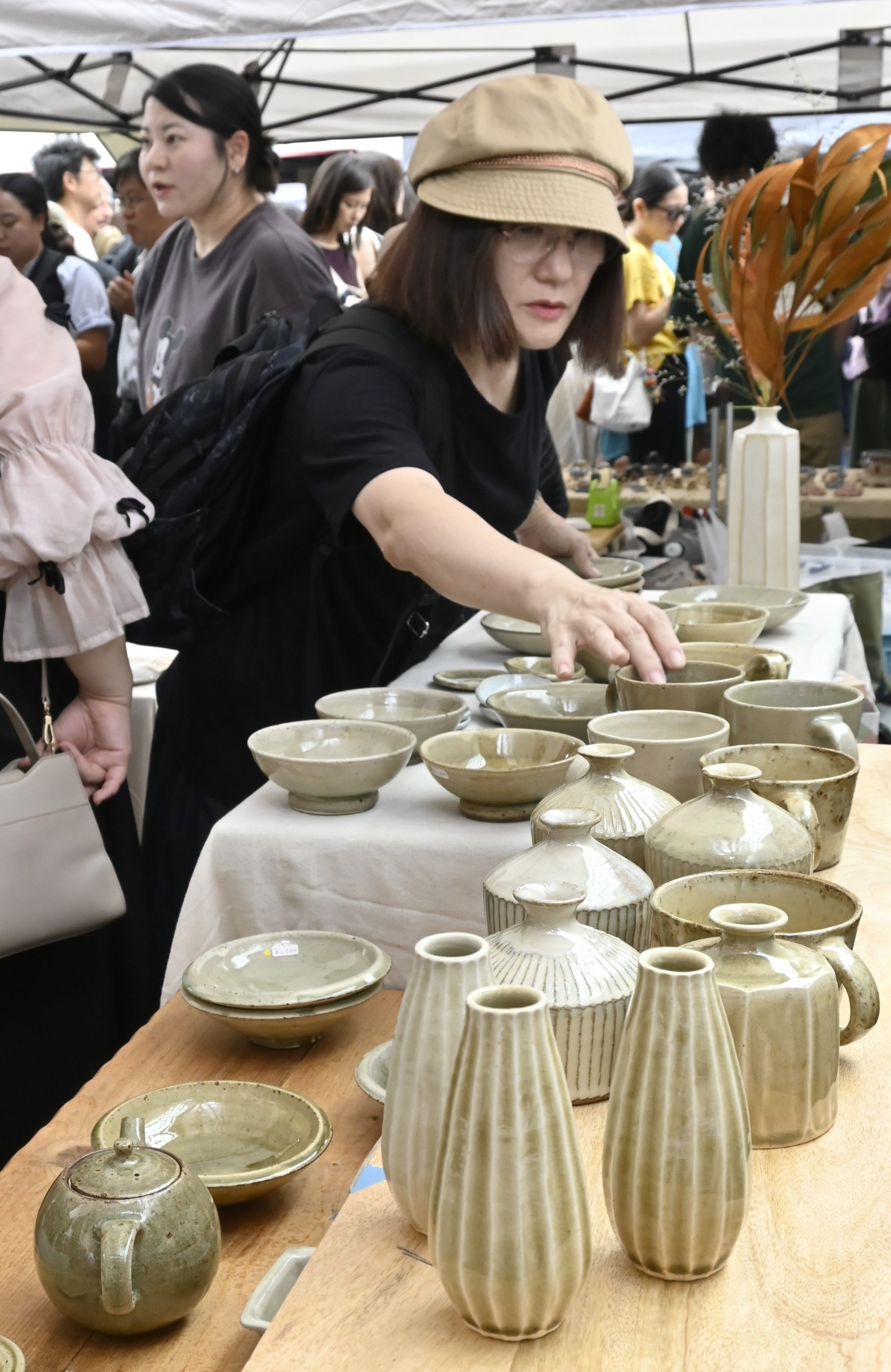 益子焼を買い求める人たちで賑わったイベント=20日午前、東京都渋谷区