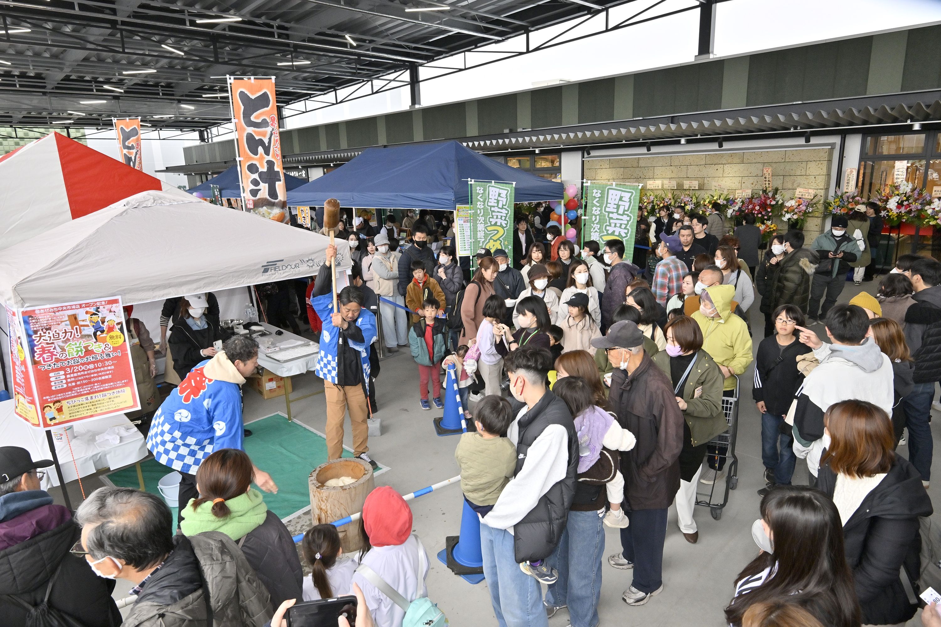グランドオープン初日を迎え、多くの来場客でにぎわった「フレスポうつのみや市場」=20日午前10時45分、宇都宮市簗瀬町