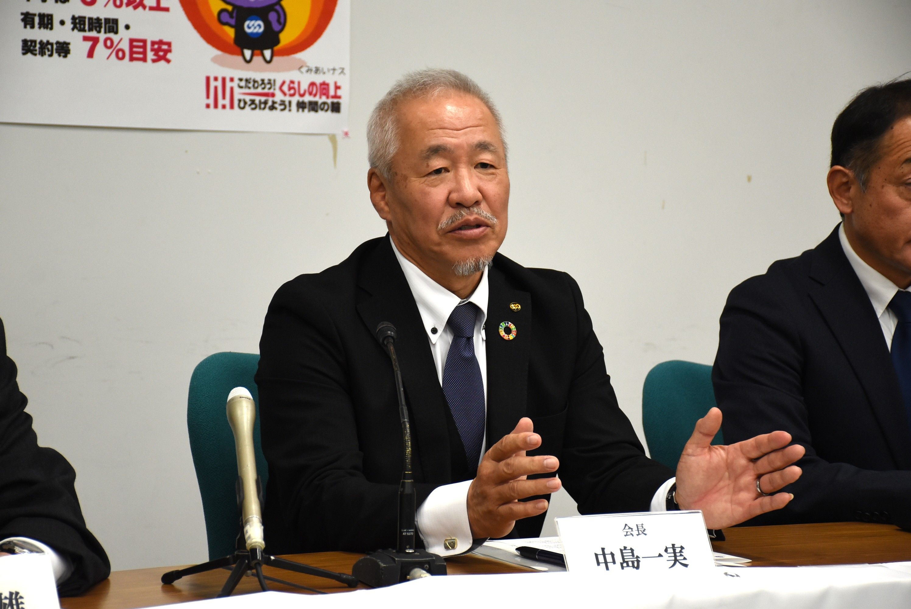 記者会見する連合栃木の中島会長=10日午後、県庁