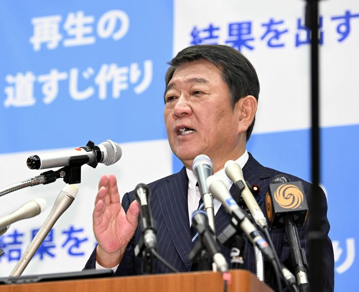 総裁選の出馬会見で記者からの質問に答える茂木氏=10日午後3時15分、衆院第2議員会館