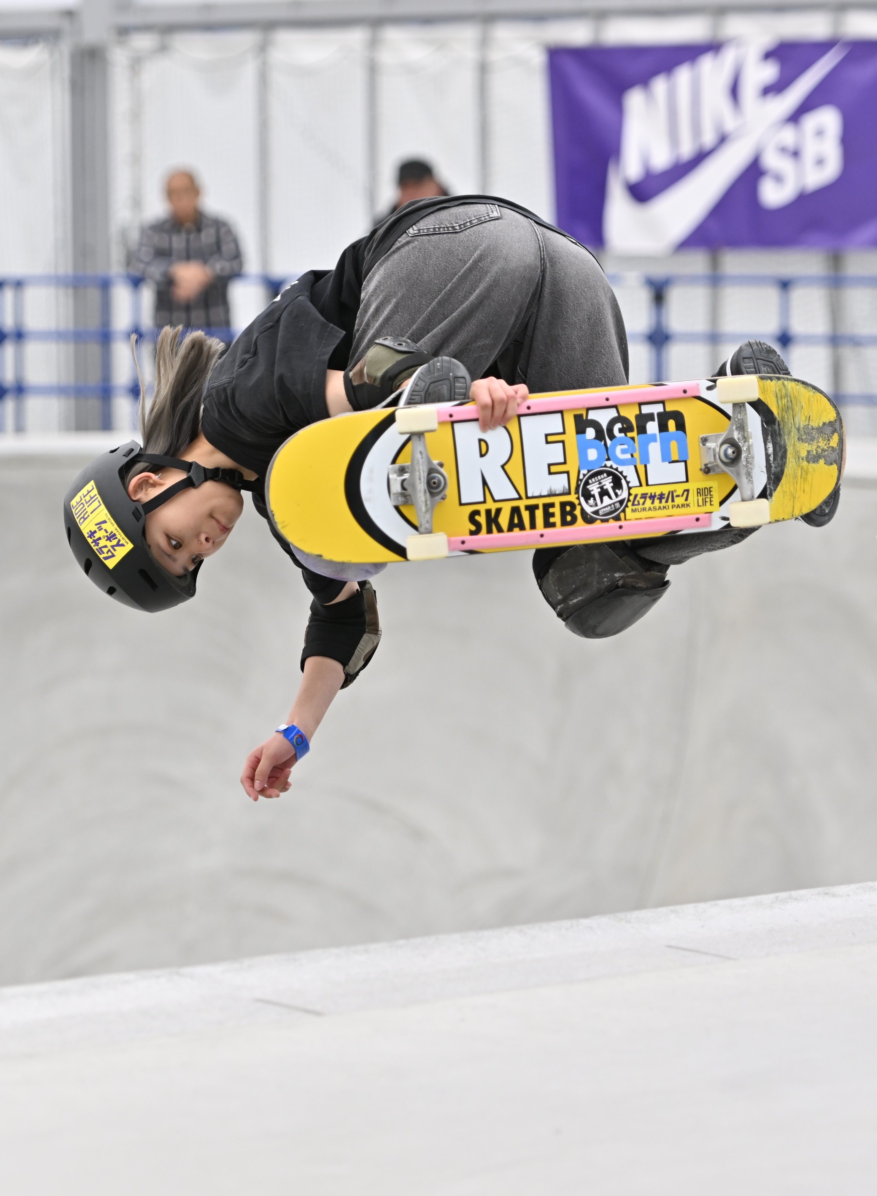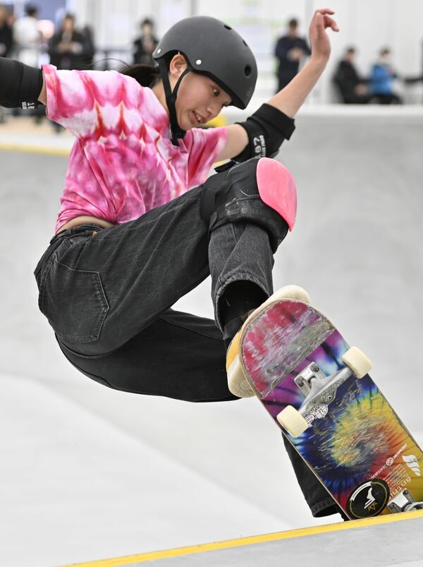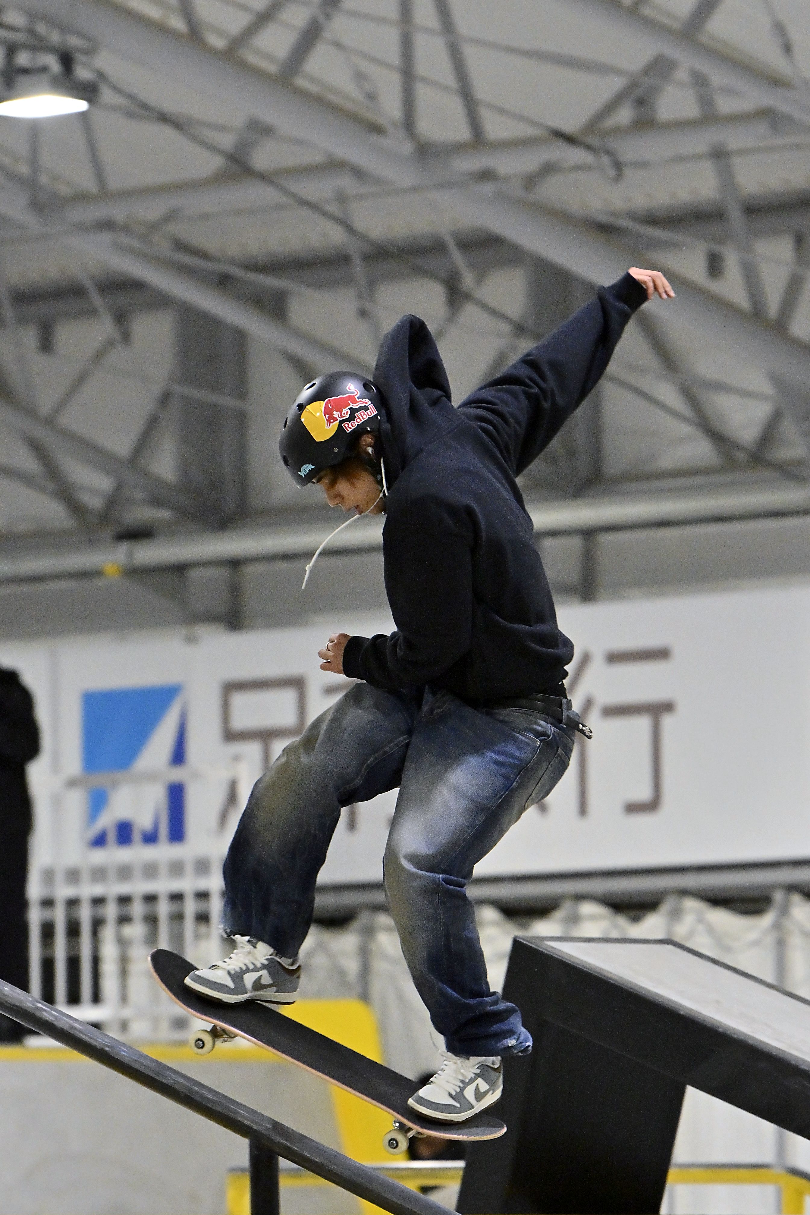 アークタウン宇都宮で初開催された日本OPEN男子ストリート予選でトリックを決める堀米雄斗=3日午後8時20分、宇都宮市下平出町