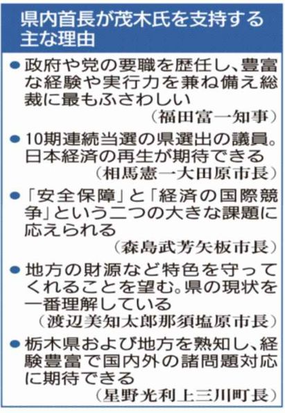 栃木県内の全首長「茂木氏がふさわしい」 自民党総裁選アンケート 要職歴任の実績、豊富な経験など評価