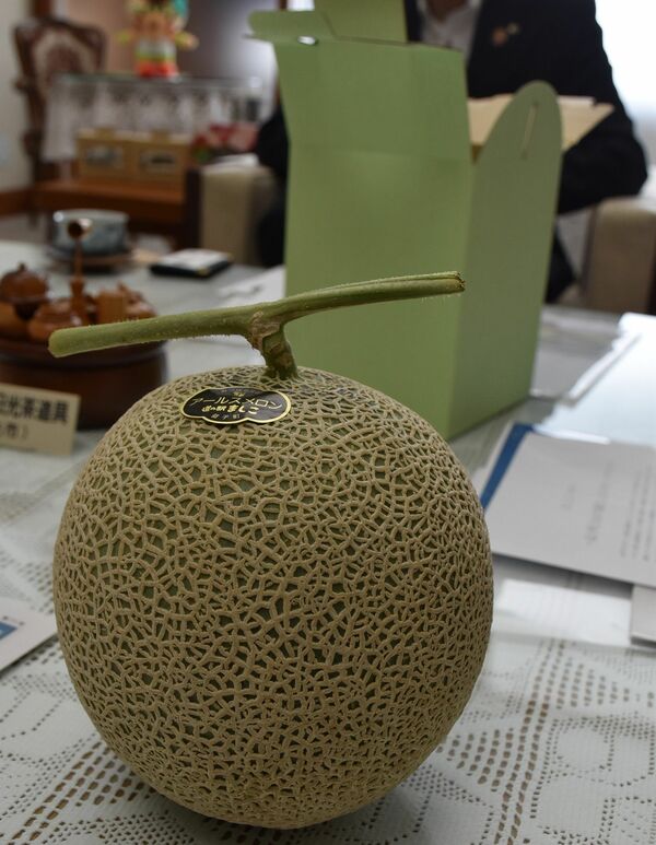 1本の木から一つの果実しか成らせないこだわりの栽培法で育てたアールスメロン=29日午前、県庁