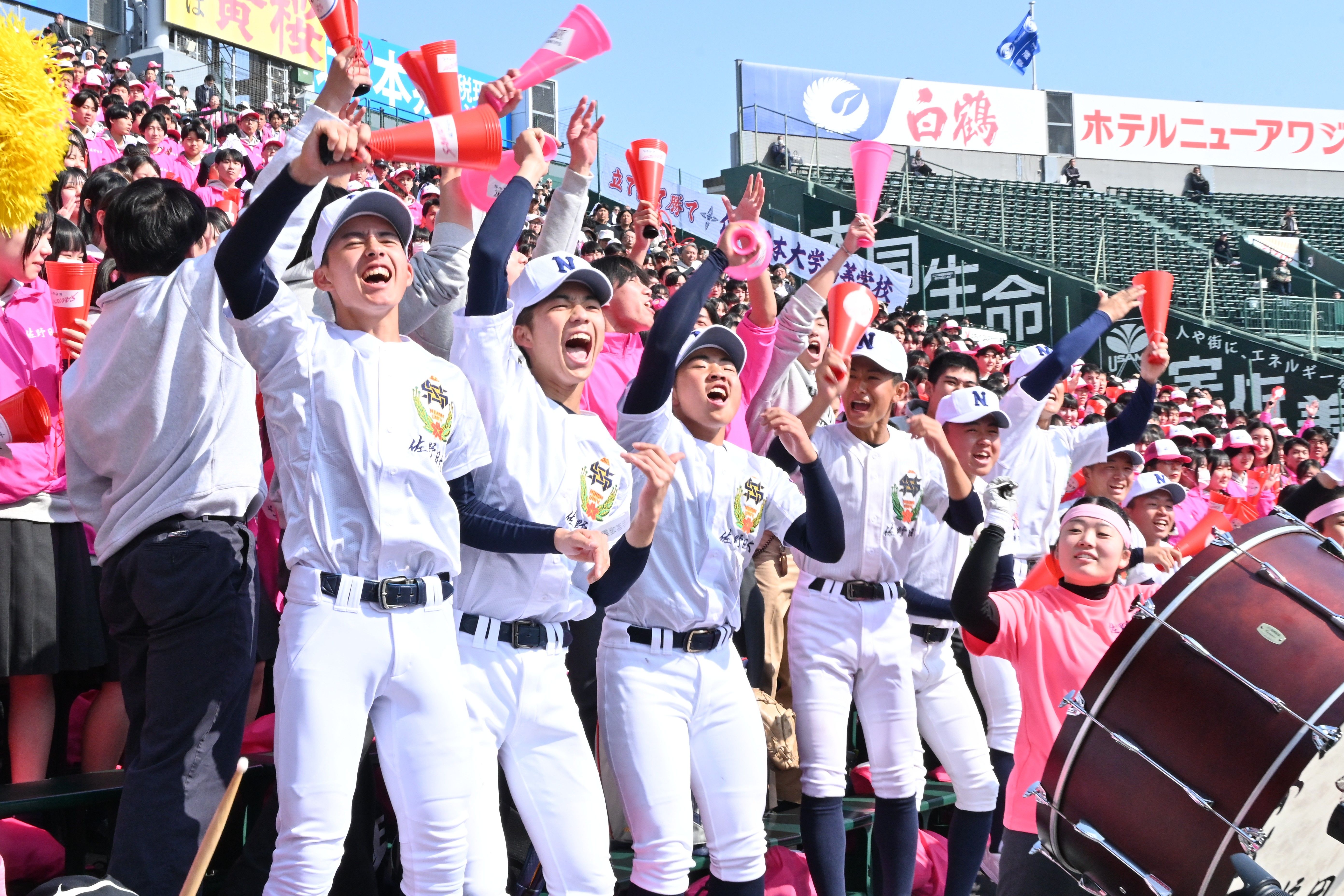 選手たちにエールを送った三塁側のアルプススタンドの応援団=23日午後、阪神甲子園球場