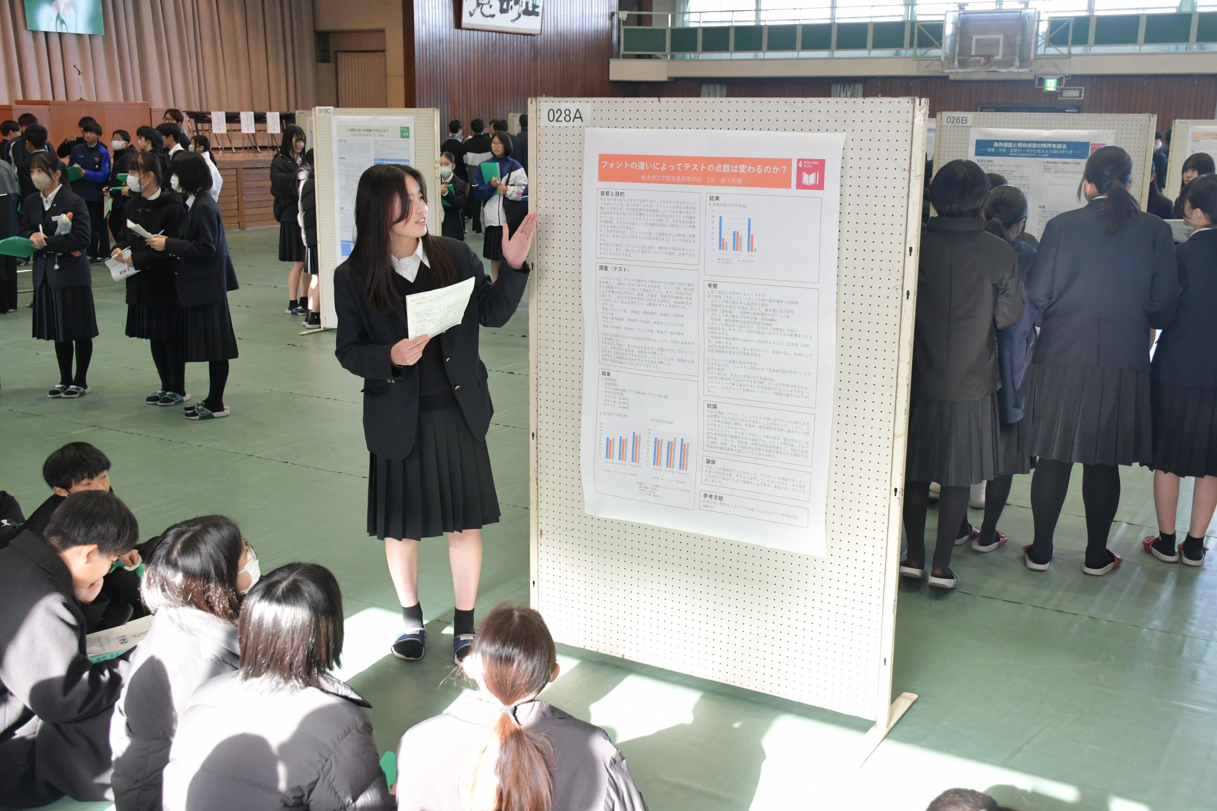 ポスターを用いて研究成果を発表する宇都宮東高の生徒ら
