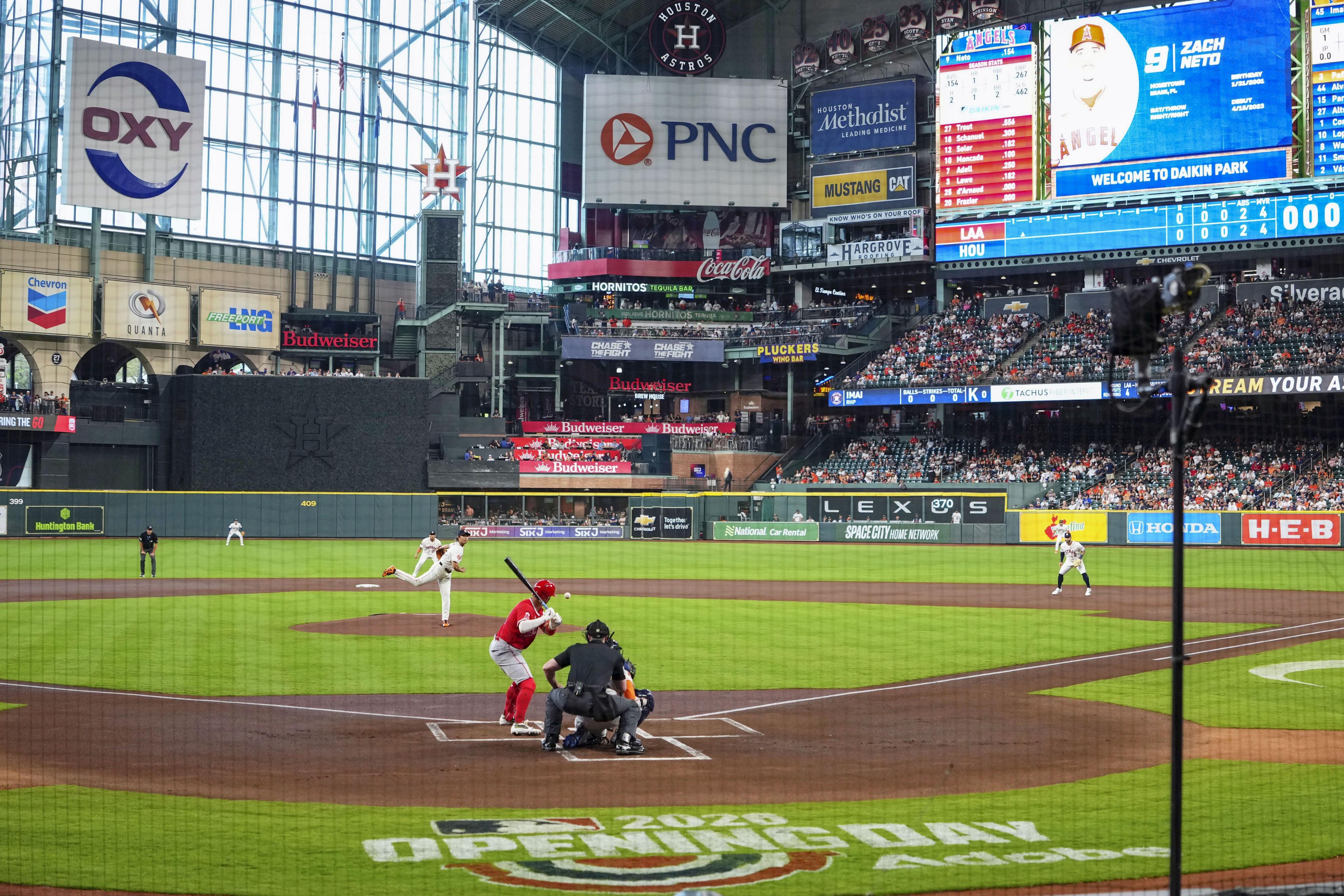 エンゼルス戦に先発でメジャー初登板したアストロズ・今井。2回2/3を3安打4失点で勝敗は付かなかった=ヒューストン(共同)