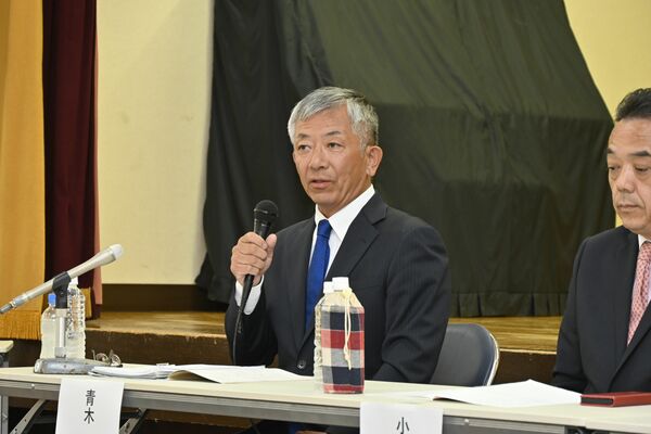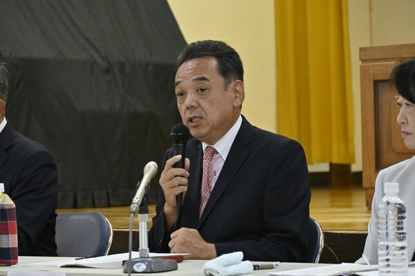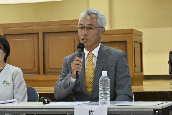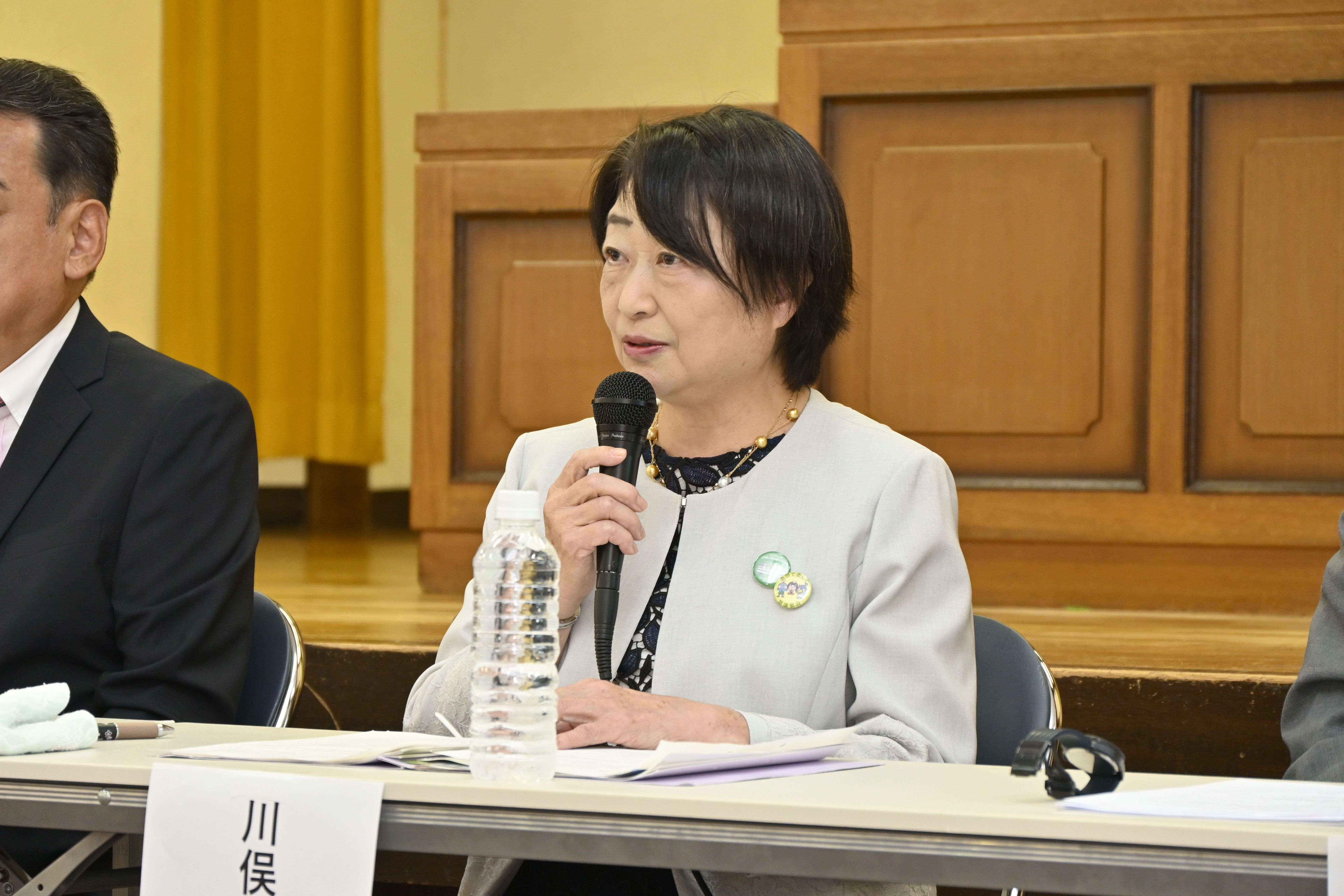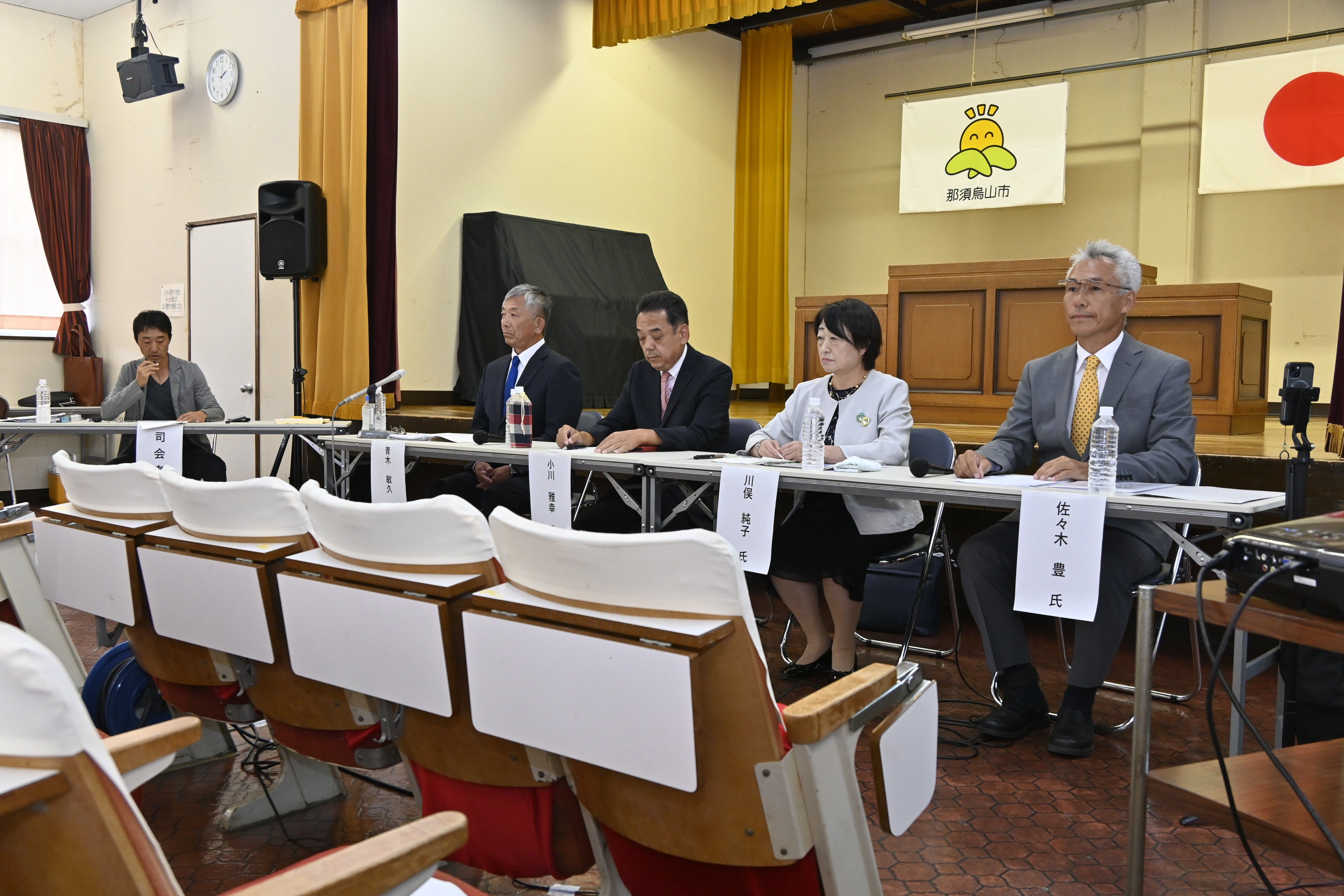 公開討論会に臨んだ(右から)青木、小川、川俣、佐々木の各氏=28日午後、那須烏山市中央2丁目