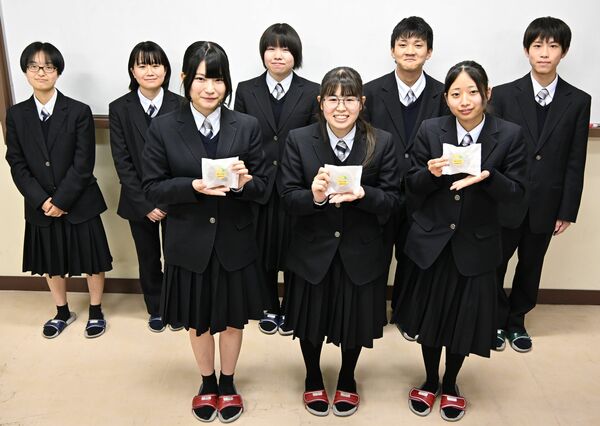共同開発した「宮ゆずどら」。生徒たちはパッケージデザインやポップ作りにも挑戦した。