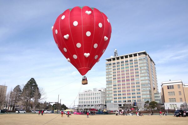 イチゴ形熱気球の搭乗体験などが行われたイベント=2025年1月19日午前、県庁周辺