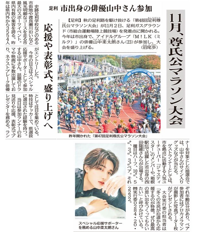 山中さんの応援サポーター就任を報じる下野新聞記事(2025年9月19日付)
