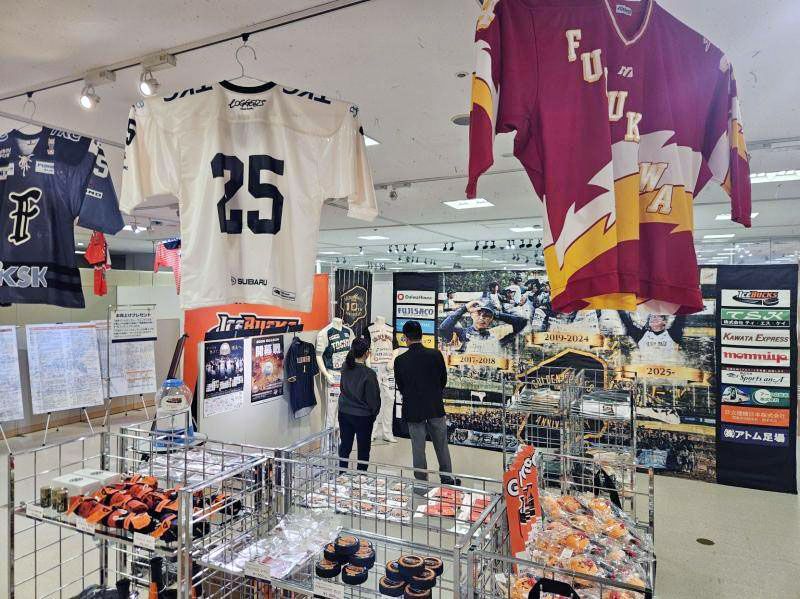 選手着用のユニフォームやプレー写真などが展示されている会場=27日午前、宇都宮市