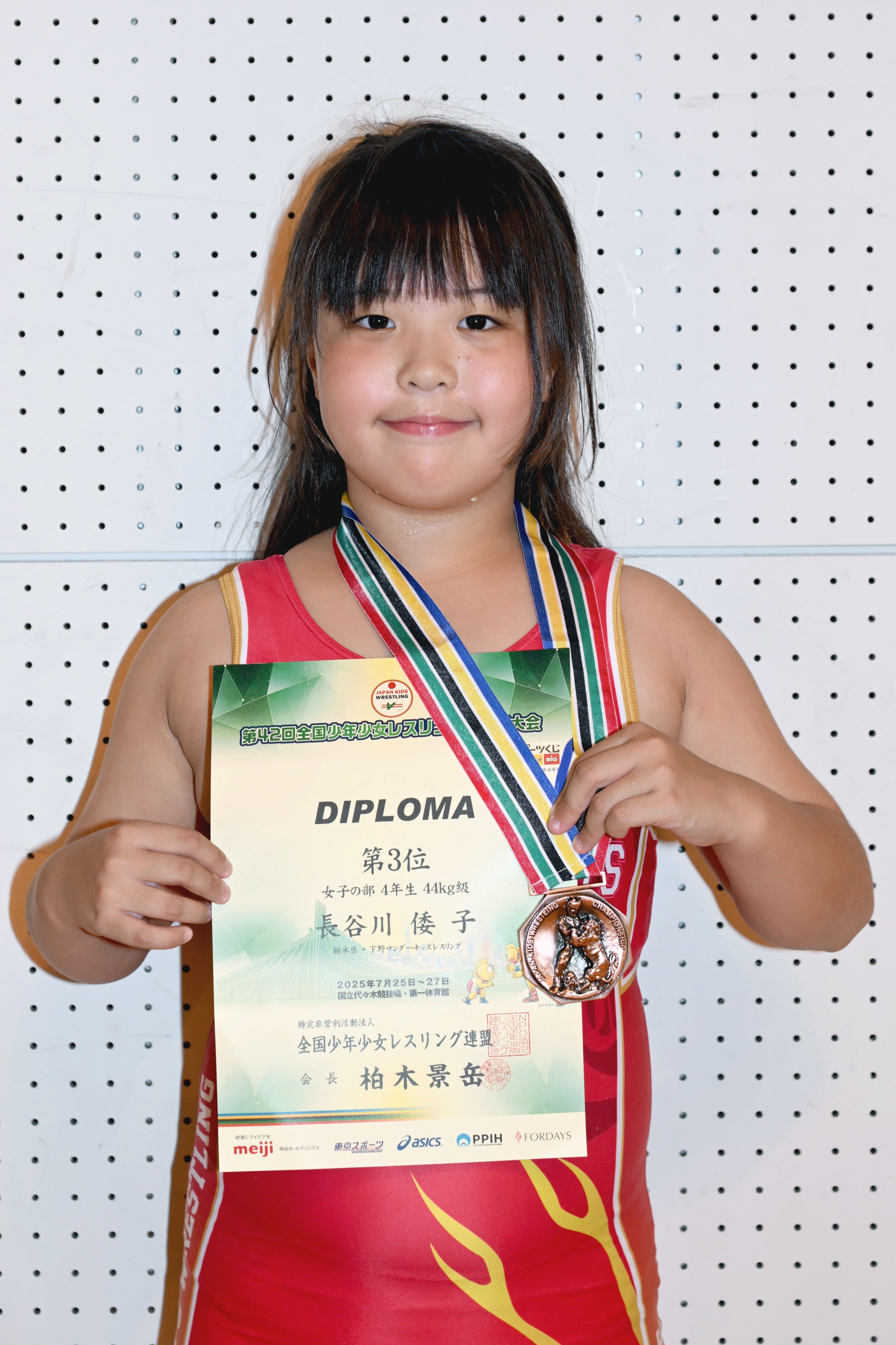 女子ホープス決勝リーグ 松本(真岡)-新名(清友クラブ)戦 第3ゲーム、松本がバックで強打=真岡市総合体育館