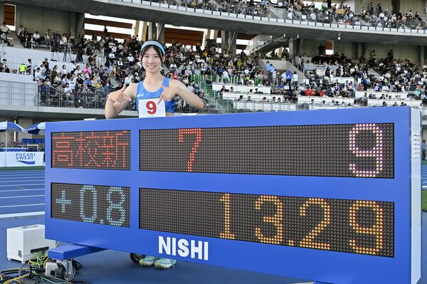 自身が持つ高校記録を更新した白鷗足利高の石原=6日午後、滋賀県彦根市の平和堂HATOスタジアム、磯真奈美撮影