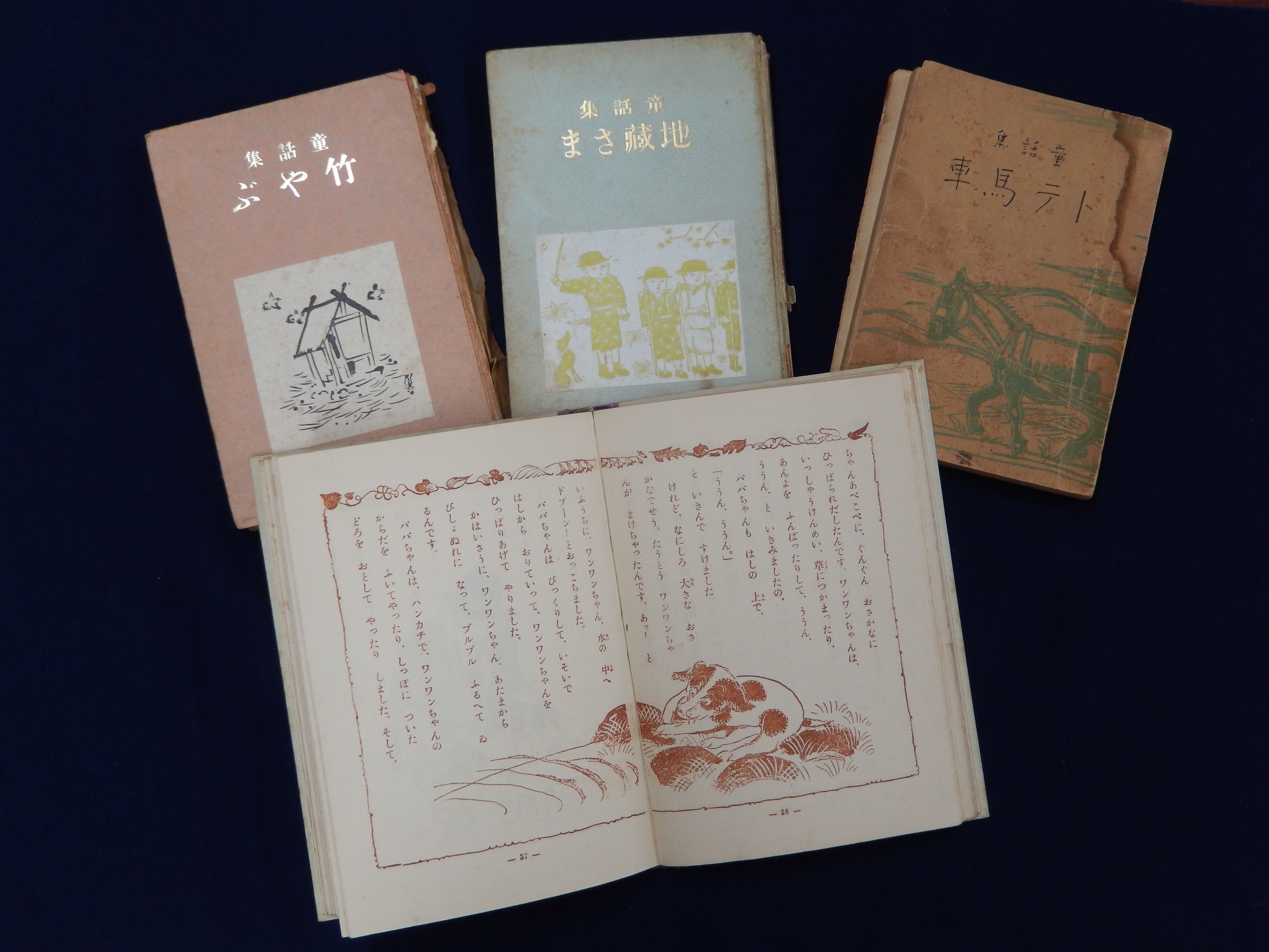 省三の童話集(右奥から反時計回りに「トテ馬車」「地蔵さま」「竹やぶ」「ワンワンものがたり」(鹿沼市教委提供)