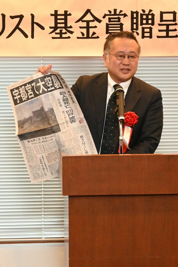 下野新聞の報道が奨励賞を受賞した「平和・協同ジャーナリスト基金賞」の贈呈式=13日午後、東京都千代田区