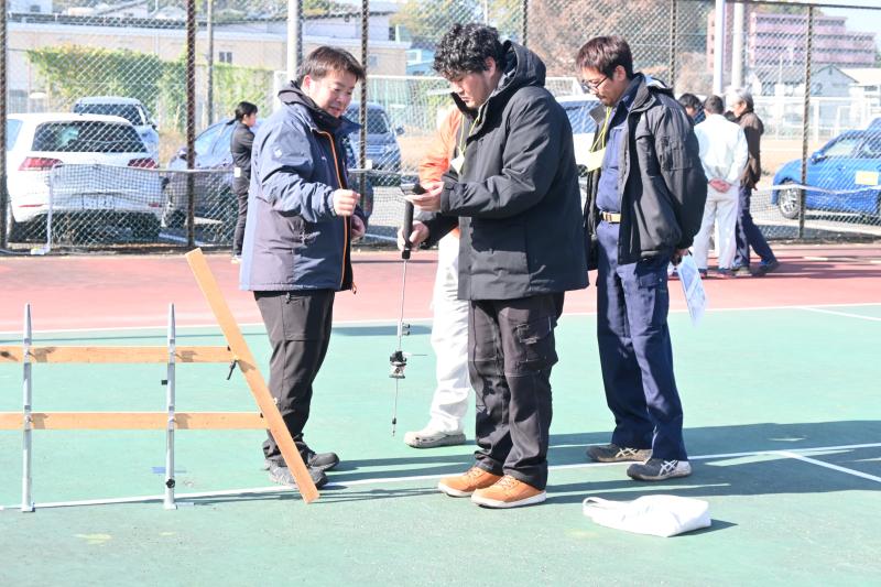 建設用ICT機器の使い方を体験する参加者ら=11月、宇都宮市内