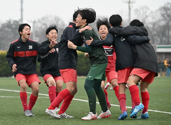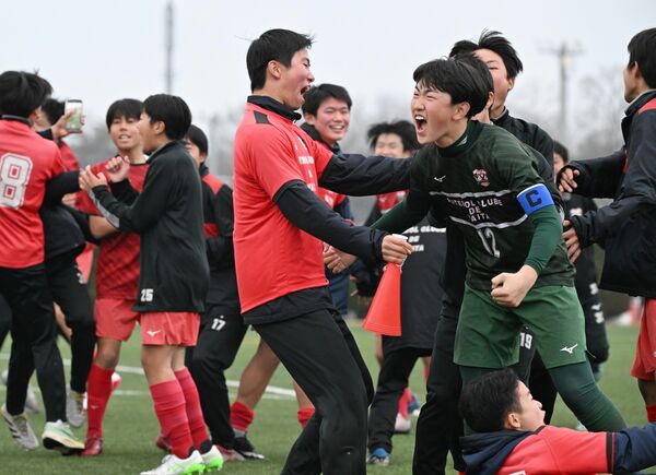 PK戦の末に勝利を収め、大喜びで集まる矢板SC Aの選手たち=フードリエサッカーフィールド青木、河野光吉撮影