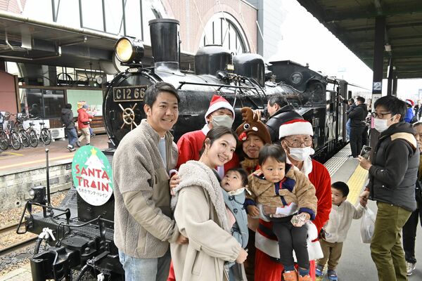 作品を観察したり香りを楽しんだりする園児ら=17日午前11時30分、那須塩原市本町