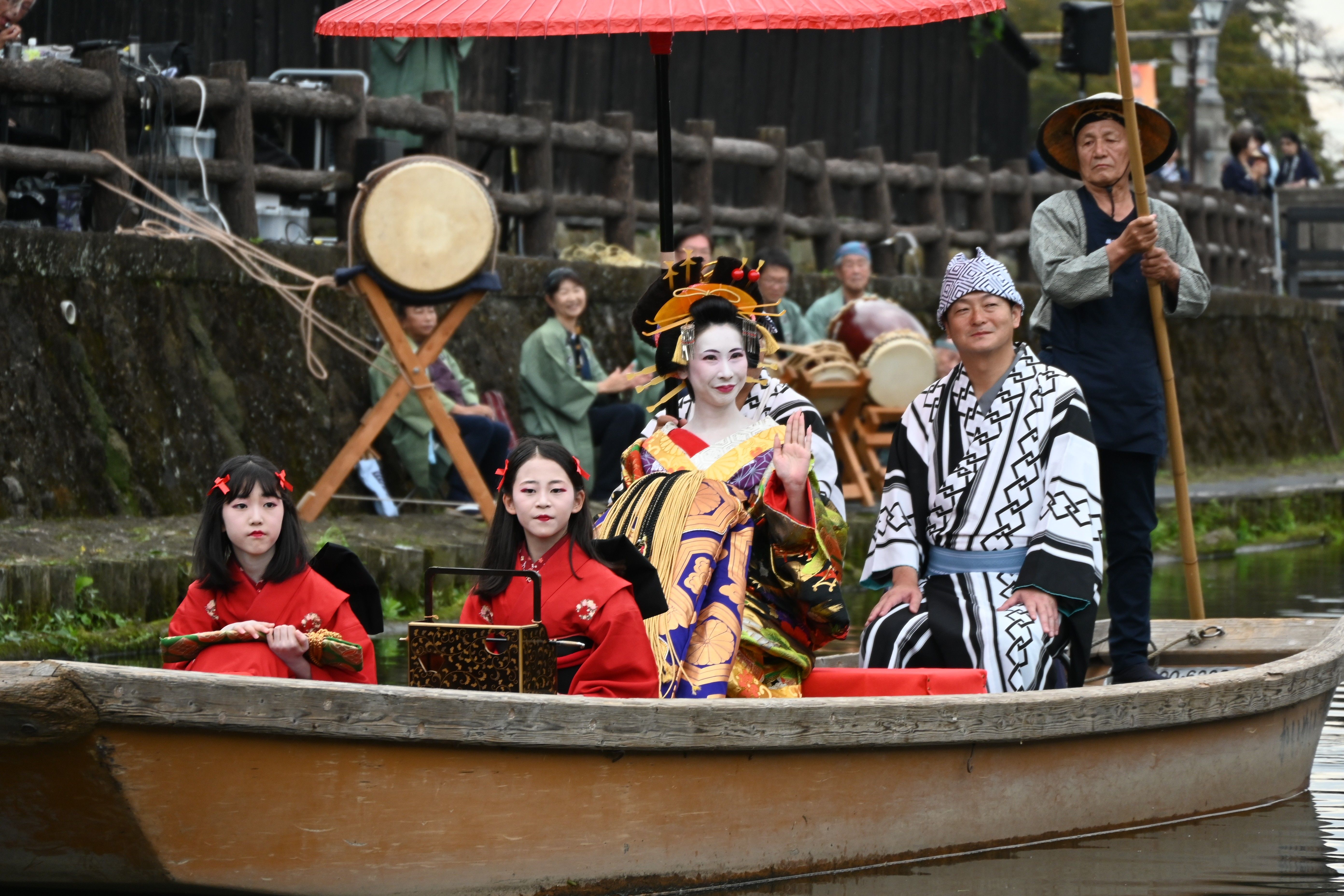 歌麿道中で華やかな衣装に身を包んだ花魁役の河原さん(中央)