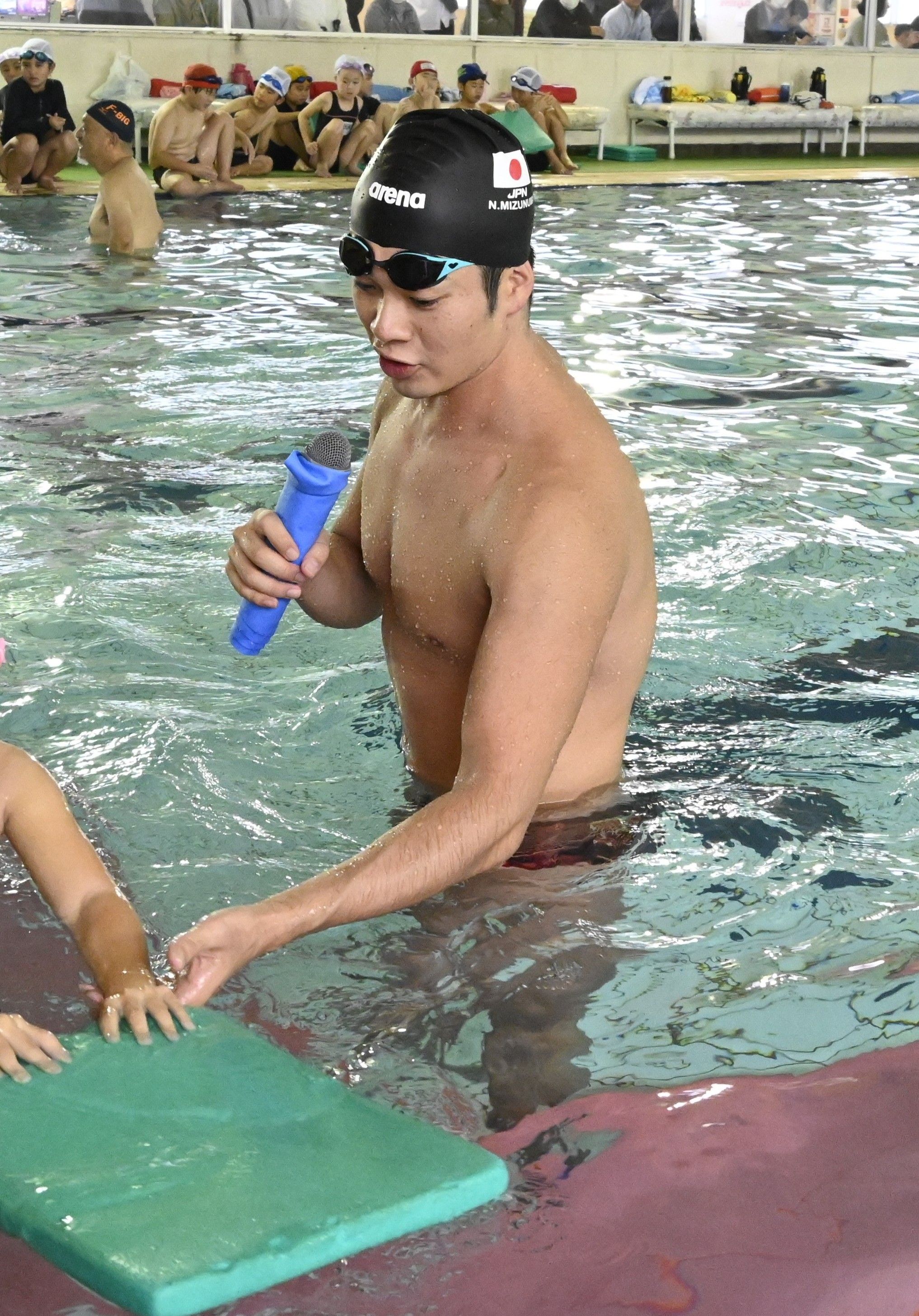 児童の泳ぎをサポートする水沼さん