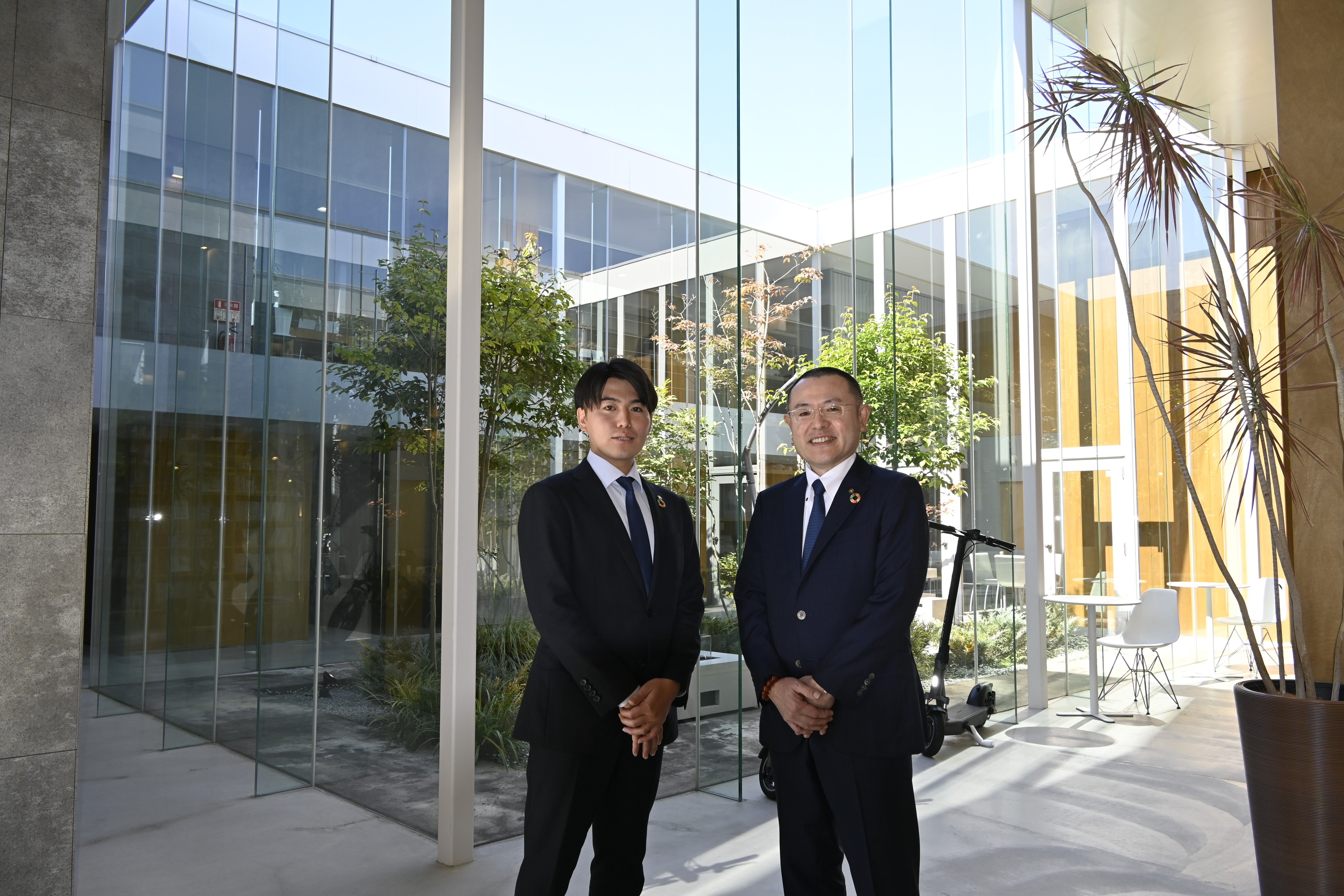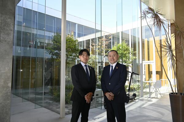 デザイン性の高い住宅を追求する増澤会長(右)と、後継者として会社のブランディングなどに取り組む長男の彩氏=宇都宮市