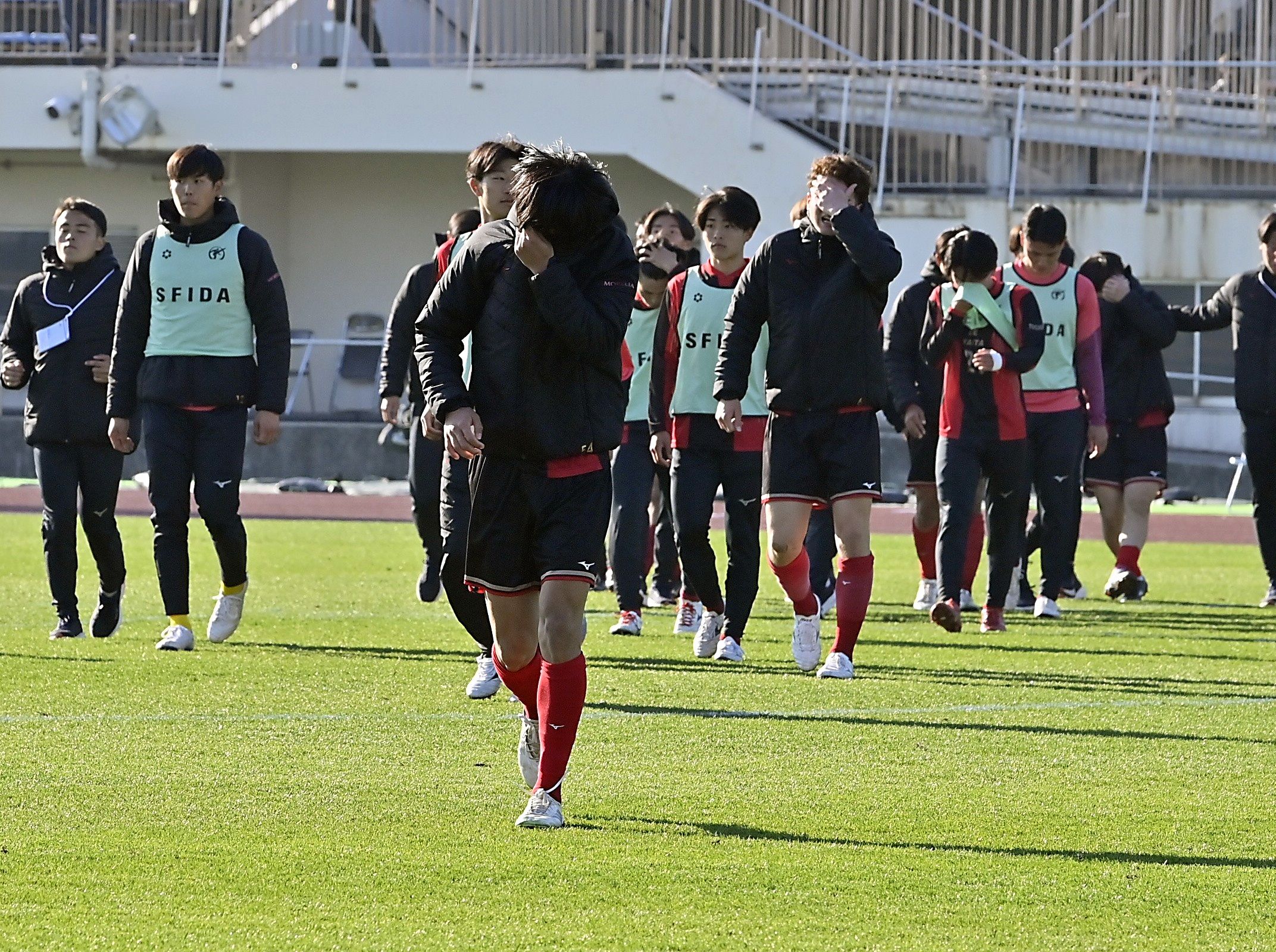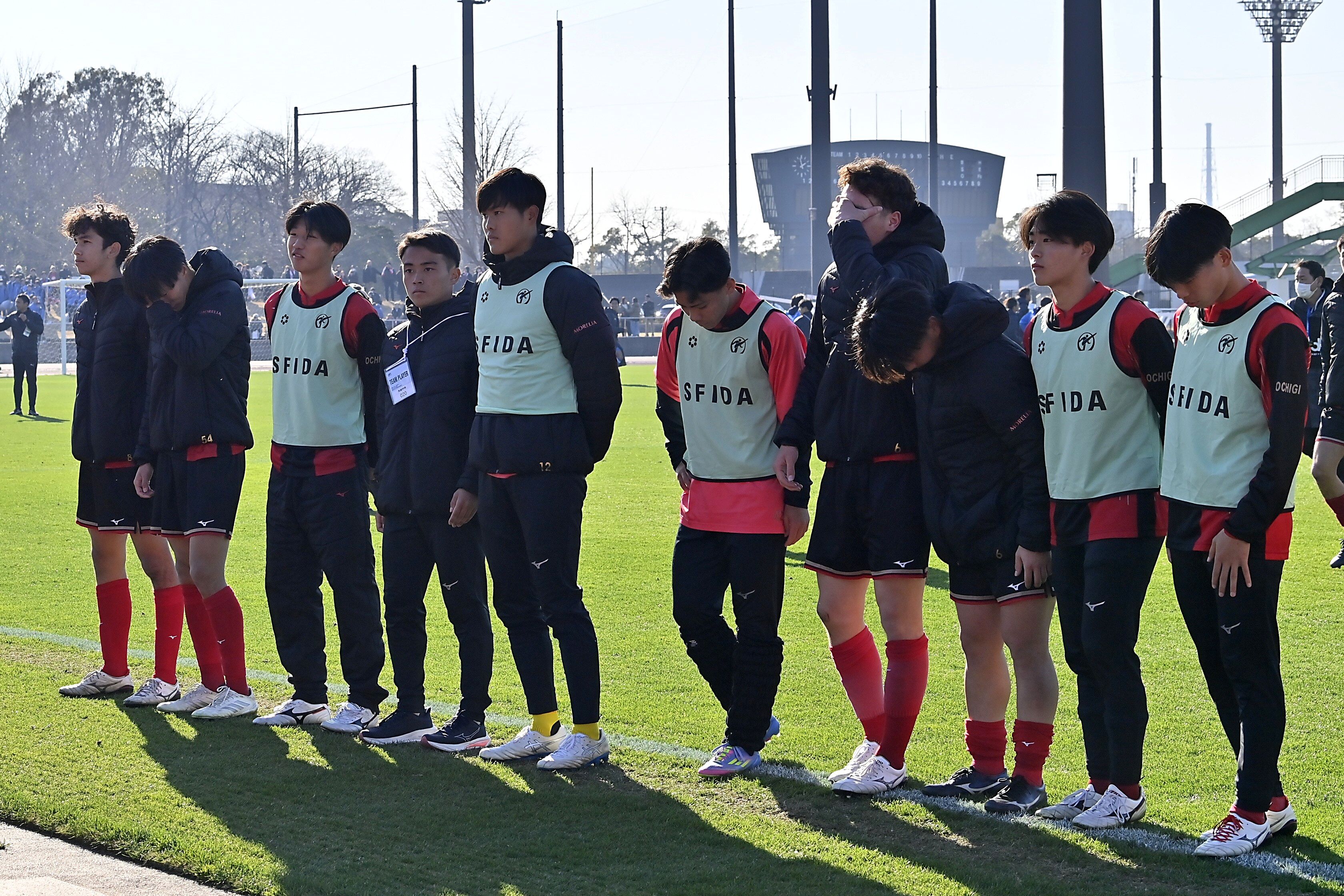 PK戦の末に惜敗し、悔し涙に暮れる矢板中央イレブン=ゼットエーオリプリスタジアム、広瀬華撮影