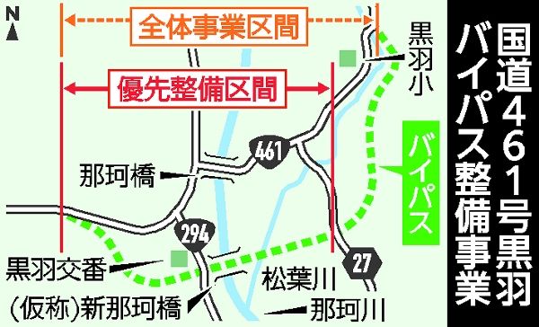 栃木・大田原の国道461号に黒羽バイパス整備へ 2034年度完了見込み 那珂川には新橋