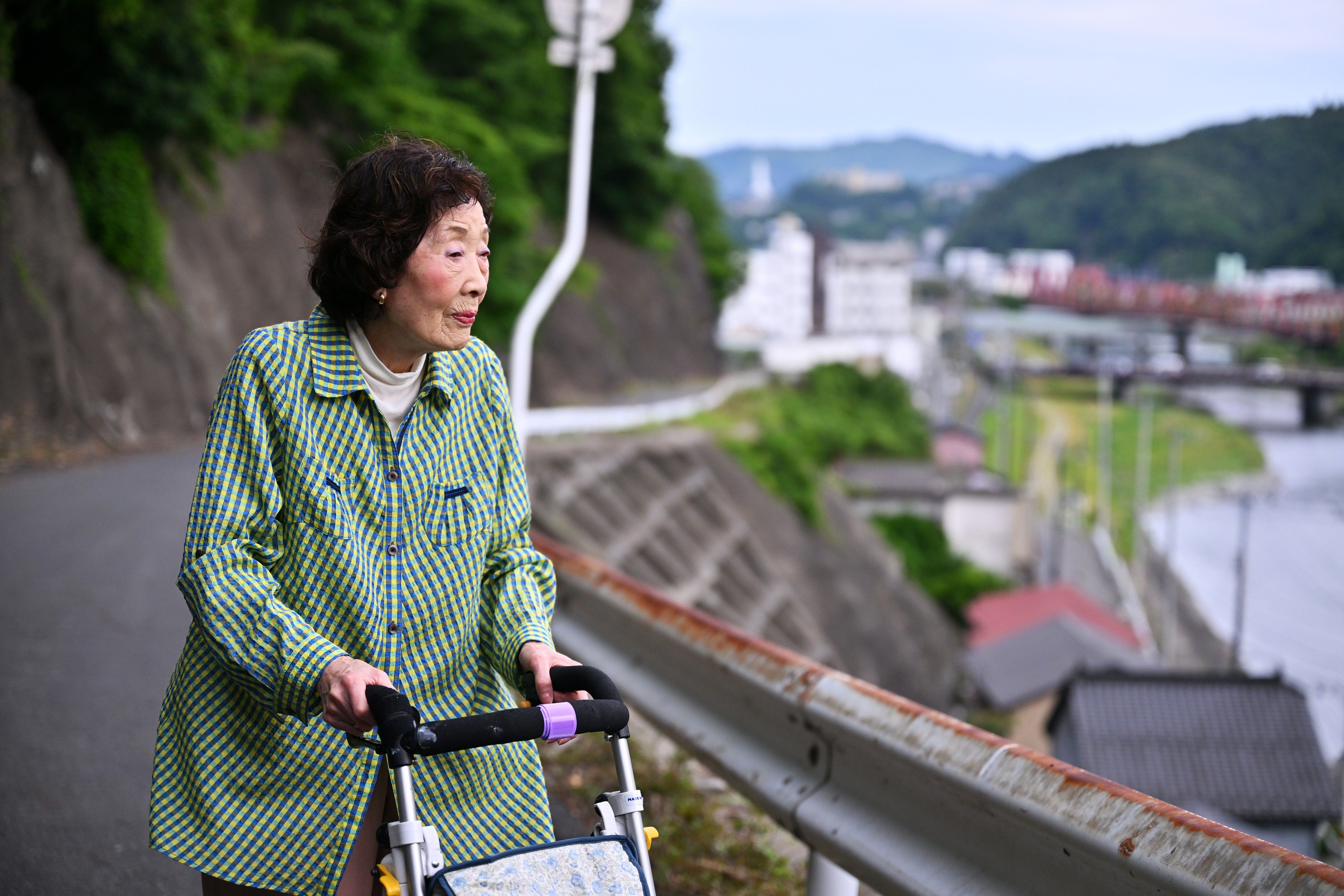 製鉄所付近で艦砲射撃があった日を振り返る佐々木テルさん。幾多の災禍を乗り越え、命の重みを次代へ訴える=6月16日、岩手県釜石市大渡町