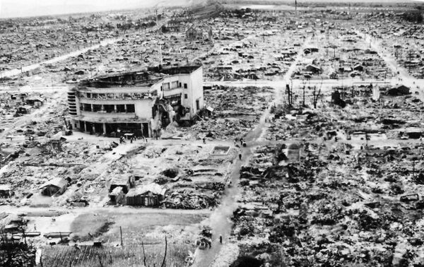 岐阜空襲後、岐阜市中心部の柳ケ瀬から西方を望んだ光景。奥が本郷町方面(岐阜空襲を記録する会提供)