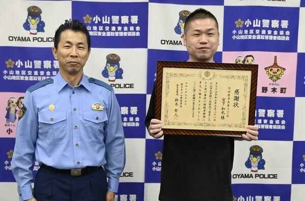 鈴木署長から感謝状を贈られる宮下さん(右)