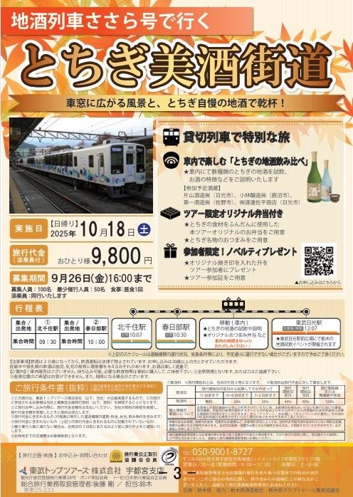 「地酒列車ささら号で行く『とちぎ美酒街道』」のチラシ