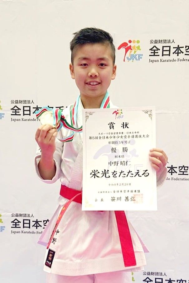 男子個人形5年で優勝した中野(一友会伊藤道場)