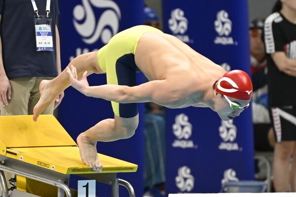 男子100メートルバタフライ決勝 5位となった水沼(新潟医療福祉大職)=東京アクアティクスセンター、森田大地撮影