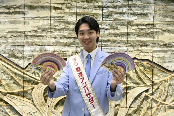 年末ジャンボ宝くじをPRする幸運アンバサダーの宮崎さん
