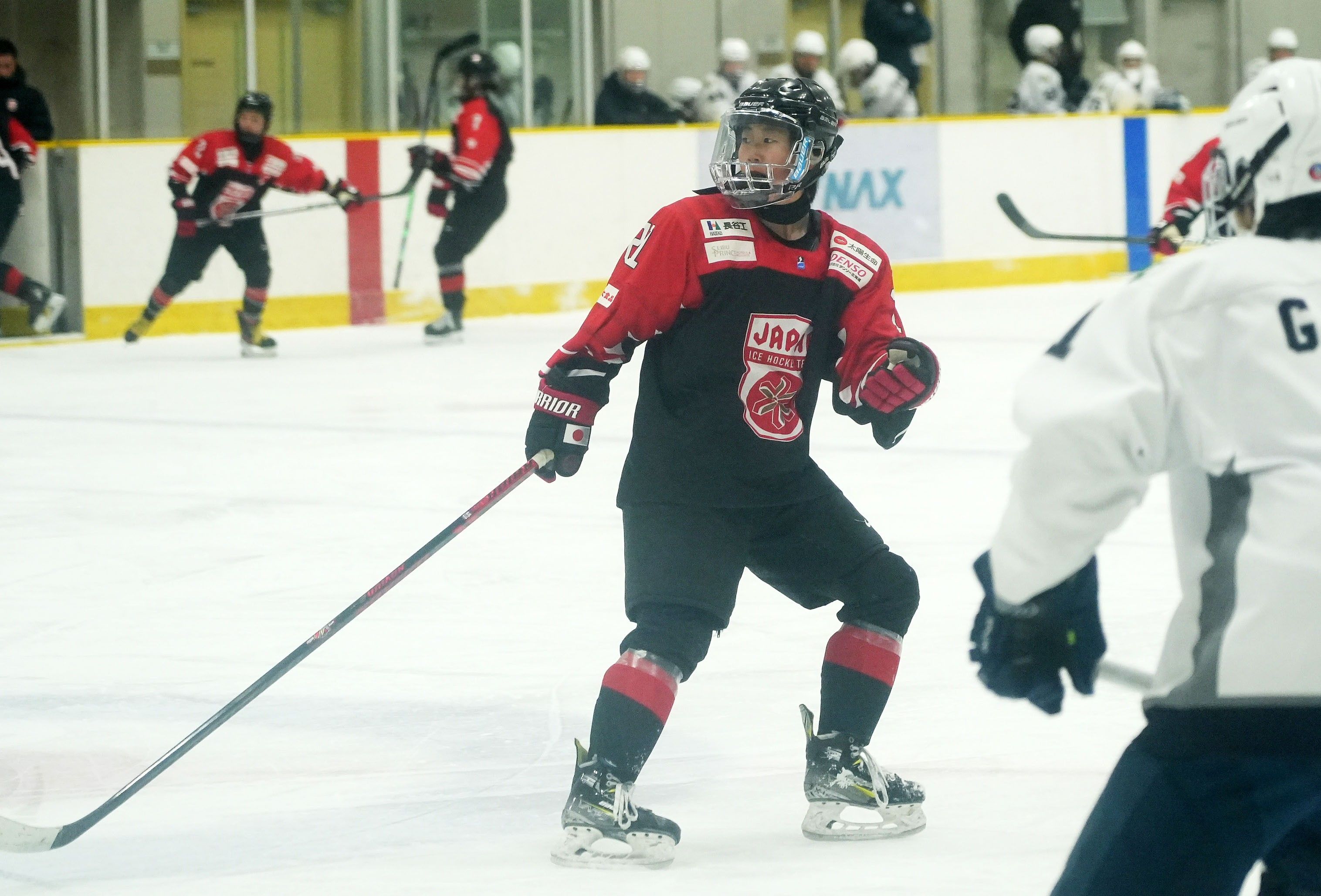 初の五輪代表に内定し、練習試合で汗を流す小平=ダイナックス沼ノ端アイスアリーナ