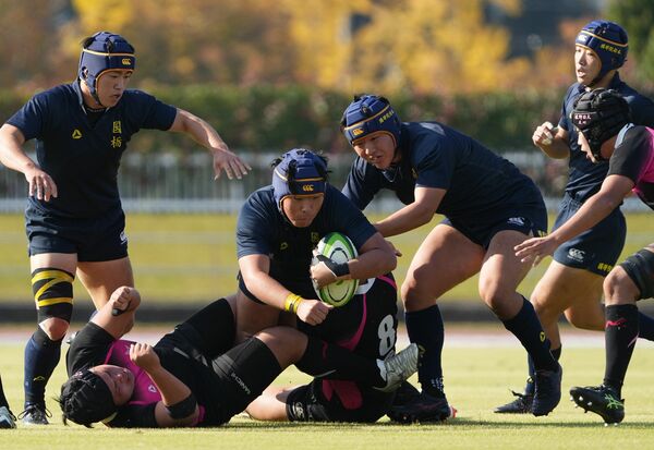 ホンダヒートのトライを喜ぶファンたち=27日午後、宇都宮市宮みらい1丁目