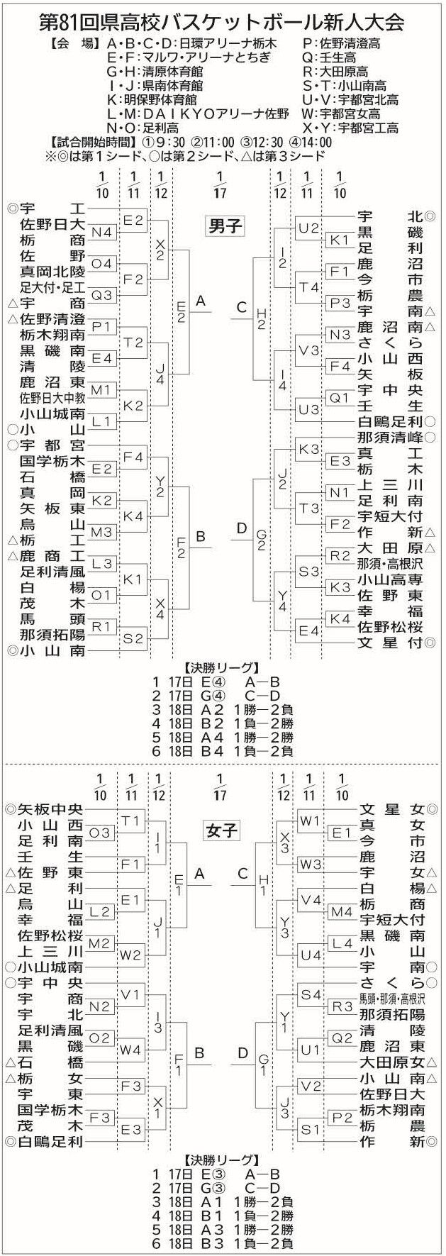 栃木県高校新人バスケ、組み合わせ決まる 1月10日開幕【トーナメント表あり】