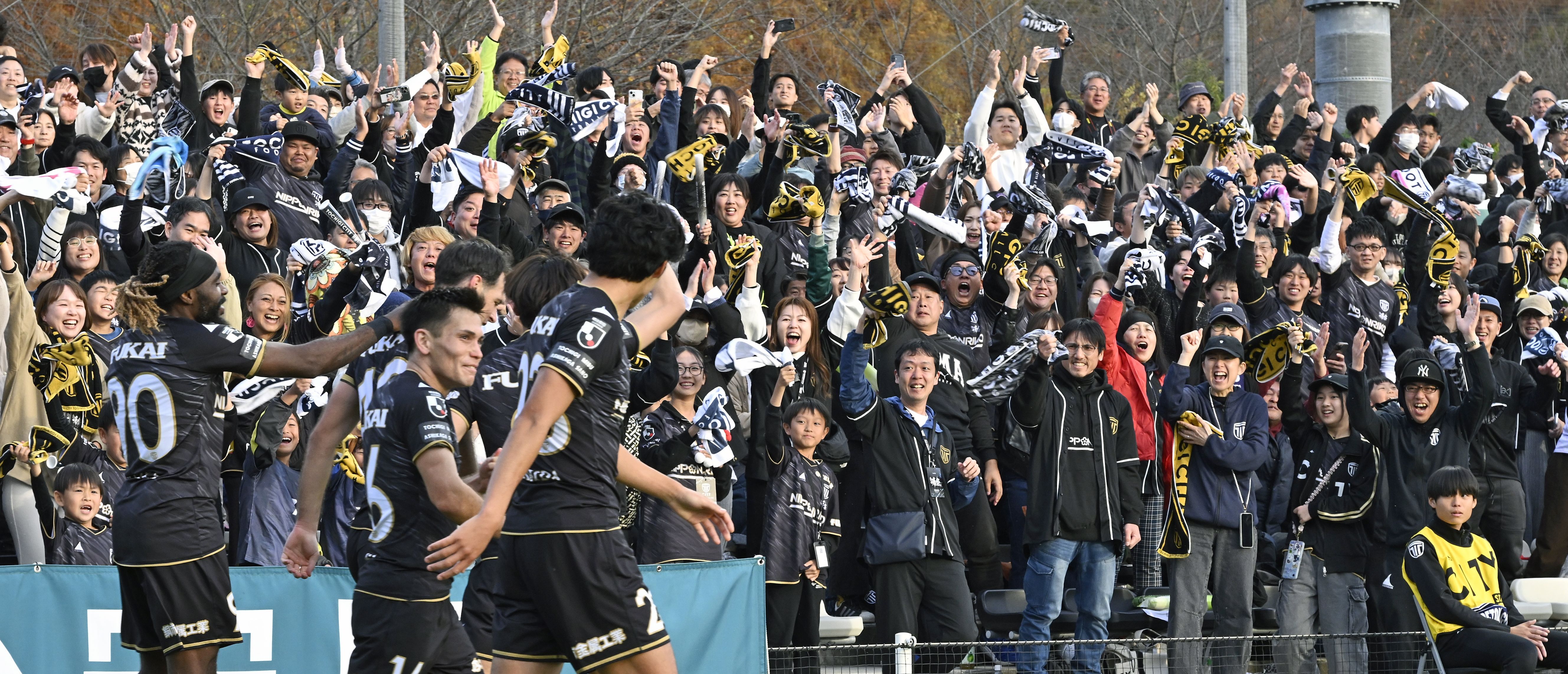 長野戦で先制し、選手をたたえる大勢のサポーター=11月23日、CFS