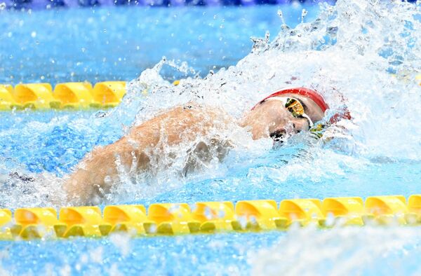 男子100メートル自由形B決勝 B決勝で4位となった蓮沼(中大)=東京アクアティクスセンター男子100メートル自由形B決勝 B決勝で4位となった蓮沼(中大)=東京アクアティクスセンター
