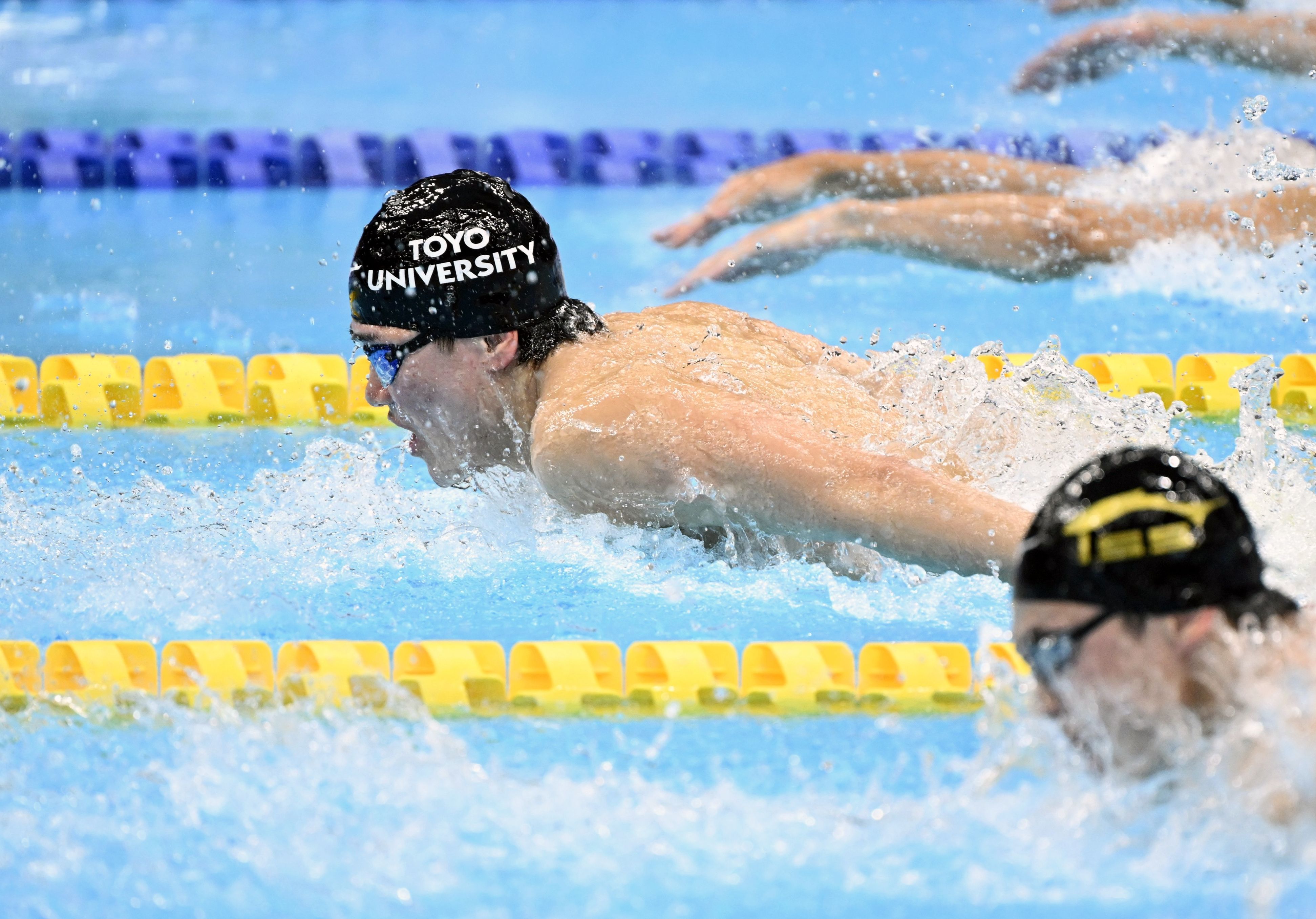 男子200メートル個人メドレー決勝 優勝した松下(東洋大)の平泳ぎ=東京アクアティクスセンター、森田大地撮影