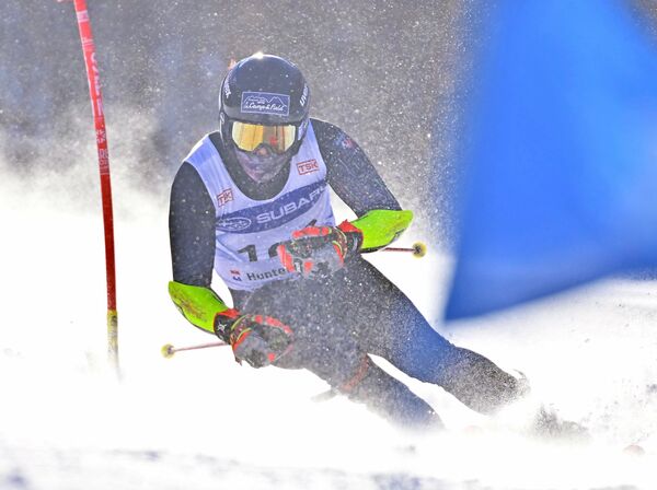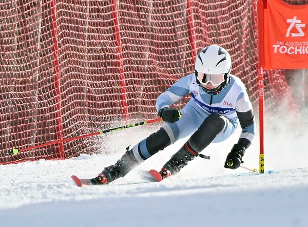 学男子大回転で初優勝した大居(那須中央)の2回目=ハンターマウンテン塩原、広瀬華撮影