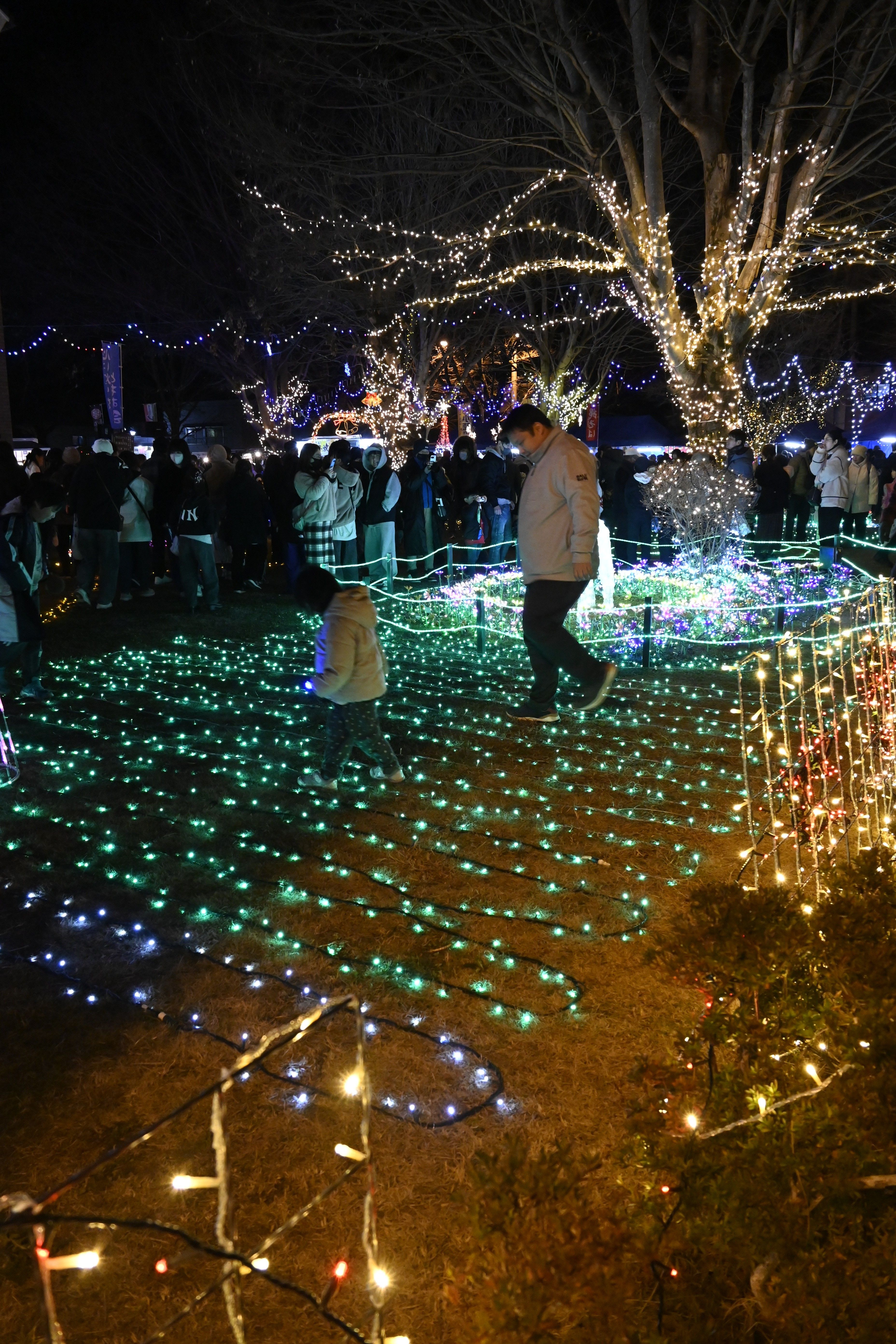 作品を観察したり香りを楽しんだりする園児ら=17日午前11時35分、那須塩原市本町