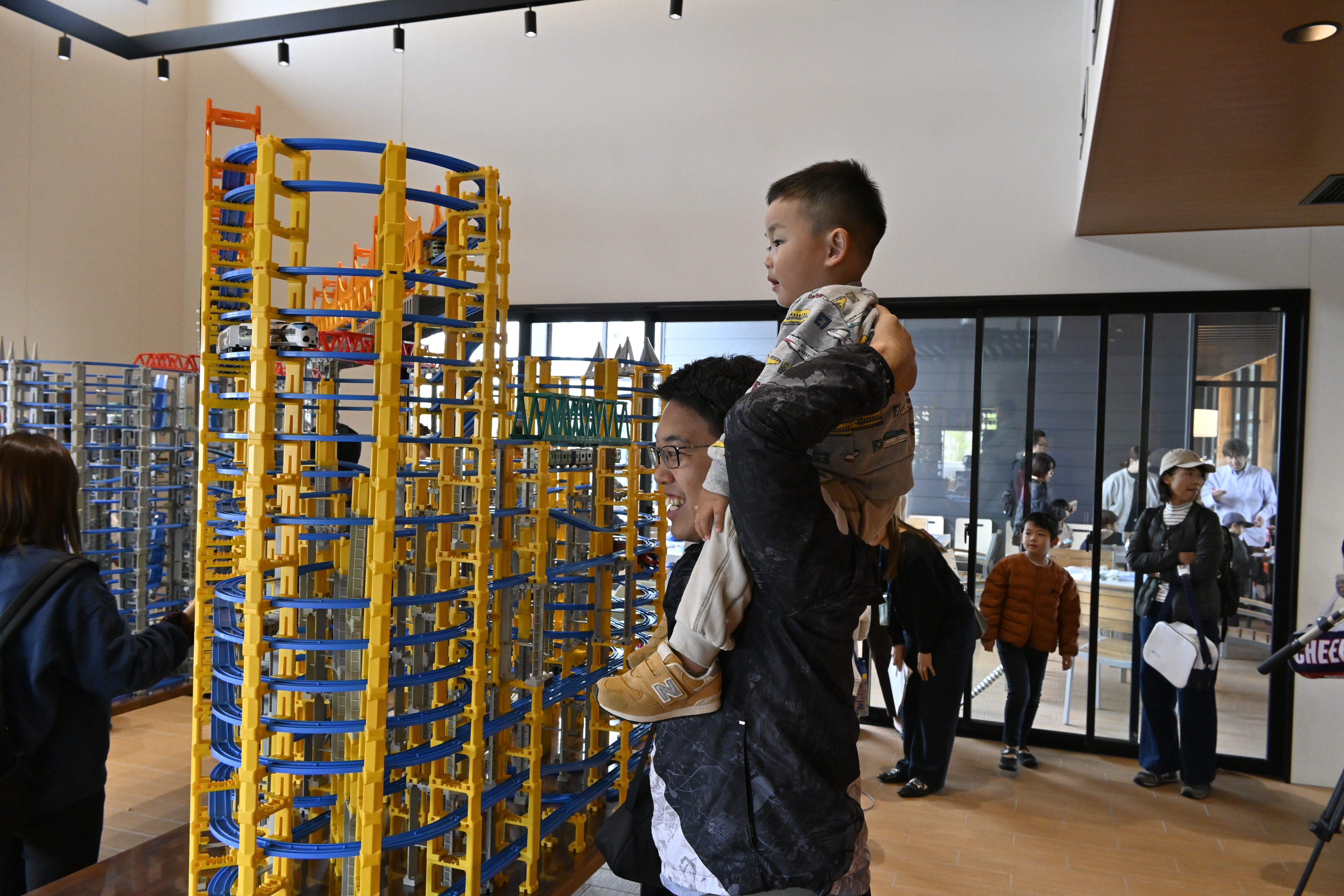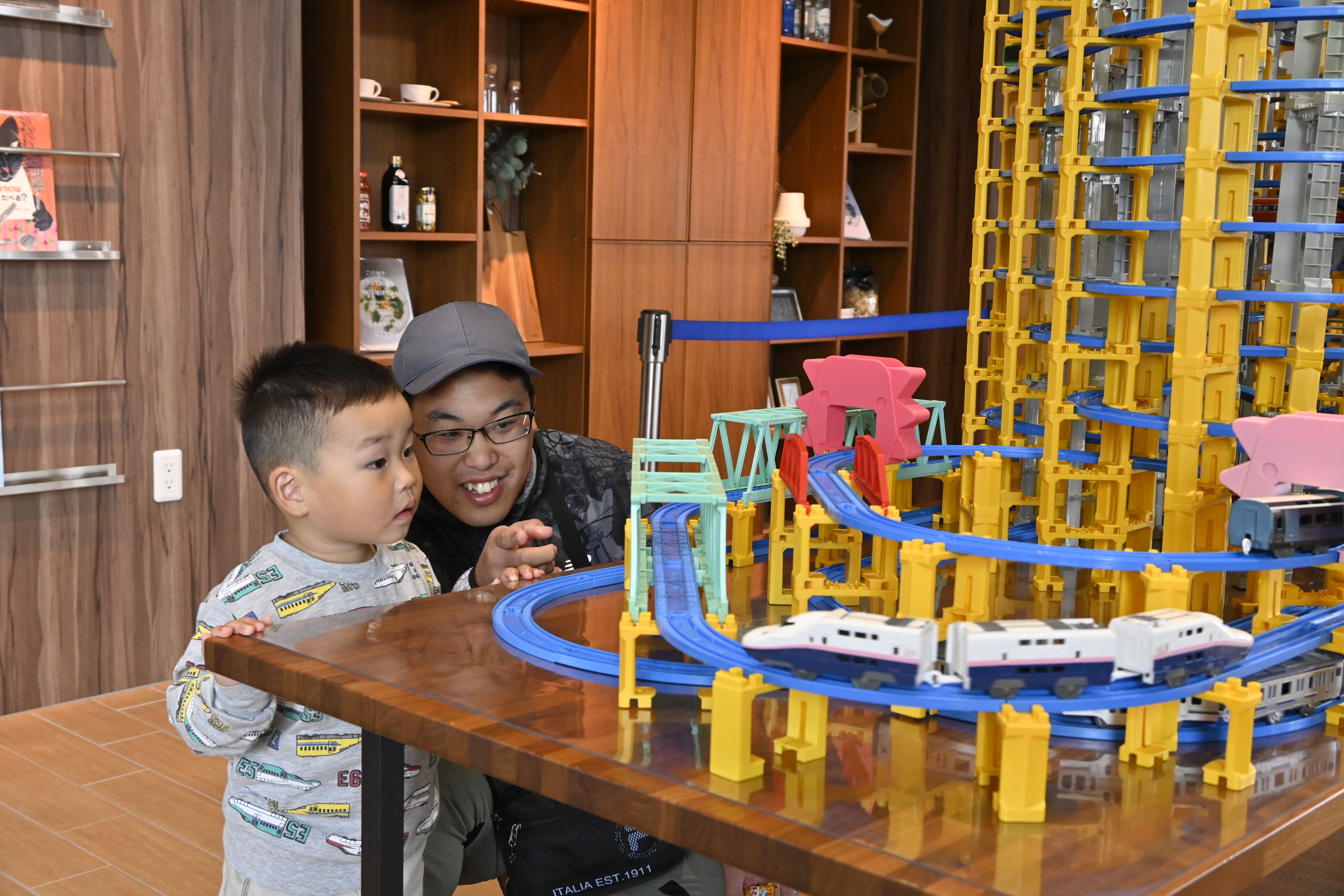 ジオラマを鑑賞する親子=25日午前、宇都宮市インターパーク6丁目