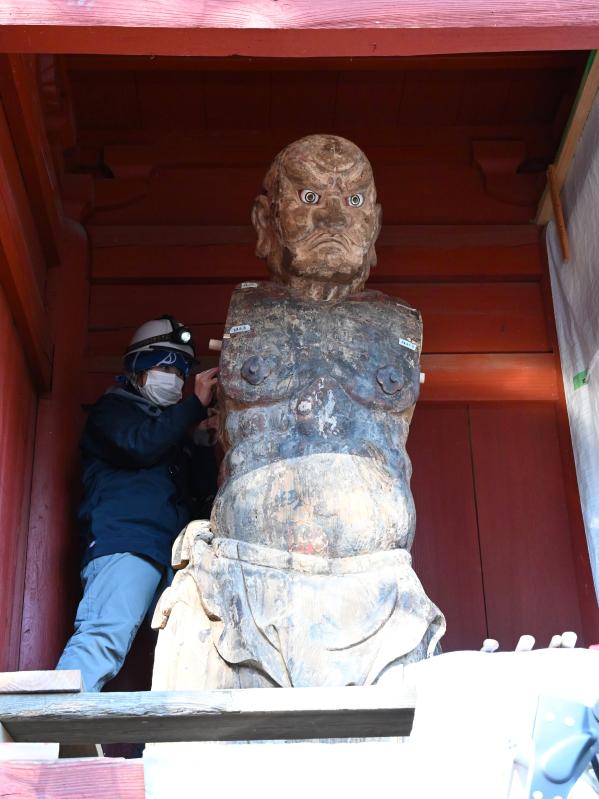 吽行の腕部を取り付ける様子